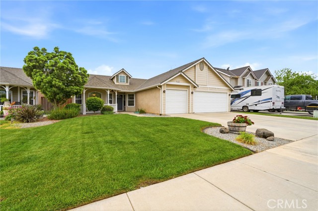 Incredibly well-maintained 3 bedroom, 2 bathroom home located in a desirable NW Hanford neighborhood. Thoughtfully designed floor plan features a spacious living room with vaulted ceilings, a gas fireplace, and a versatile flex space ideal for a playroom, formal dining area, or additional living space. The kitchen offers modern appliances, granite countertops, rich wood cabinetry, and a large pantry. The backyard is fully landscaped and designed for entertaining, complete with a generous patio area and a fire pit space. The oversized owner's suite provides a true retreat, featuring dual vanities, a soaking tub, a separate shower, and a large walk-in closet. Additional features include a 3-car garage with ample space for parking and storage. Located within the Pioneer School District with a convenient commute to NAS Lemoore. Bed count differs from tax records. Buyer to verify