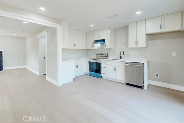 Imagine a home stripped down to the studs and rebuilt with nearly everything brand new. The flooring was reinforced, 40% of the framing was replaced, and a new 45-year roof was installed. A new HVAC system with ducting, all new insulation, brand new plumbing, a new main electrical panel, and all new wiring throughout bring peace of mind that both the major and minor systems have already been done. Inside, the home has been finished with a clean, modern style including new interior and exterior paint, brand new flooring, tall baseboards, trim work, and new windows throughout. The kitchen was completely redone with high-end quartz countertops, real wood soft-close cabinetry, stainless steel appliances, and a functional layout. The bathroom is entirely new, and even the exterior has been re-stuccoed and finished with a new garage door. Built to current standards and signed off by the city, this property sits on a quarter-acre lot with RV access and plenty of room for a future ADU, garden, workshop, or outdoor living space.