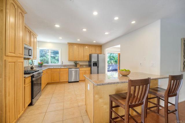 Set on nearly one acre in the quiet rural setting of Fallbrook, this SINGLE-STORY retreat offers a rare blend of privacy, space, and serene natural beauty. Framed by mature citrus trees and lush greenery, the property invites a tranquil lifestyle with picturesque views from nearly every window. A welcoming front porch sets the tone, leading into an airy interior where generous living spaces are designed for both comfort and connection. The open-concept family room and kitchen flow seamlessly to a beautifully finished paver patio with a pergola—ideal for effortless indoor-outdoor entertaining. Two fireplaces, located in the family and living rooms, add warmth and charm, while the adjacent dining area opens to an additional patio for expanded gathering space. Down the hall, three spacious bedrooms provide peaceful retreats, each filled with natural light and garden-like views. The oversized primary suite features a walk-in closet, a versatile nook perfect for a reading lounge or home office and direct access to a private patio. The ensuite bath offers dual sinks and a step-in shower, creating a comfortable and functional space. Outdoors, thoughtfully designed hardscaping with pavers and pathways surrounds the home, while a charming white fence frames the citrus orchard in the front yard. The expansive backyard offers endless possibilities—whether hosting gatherings, cultivating a garden, or creating additional terraced retreats. Enjoy the quiet ambiance of rural living with the convenience of nearby amenities just minutes away, making this Fallbrook property a truly special place to call home.