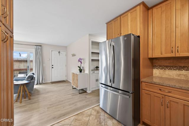 Freshly remodeled 3 bed/2 bath single-story end unit in Sandpiper Village. Open floor plan with luxury vinyl plank flooring, modern color palette & industrial-style lighting. Redesigned kitchen opens to the dining area with bar seating & features granite counters, tile backsplash & raised panel cabinetry. Primary suite offers custom closets, ceiling-mounted TV & ensuite bath with oversized walk-in shower. Private patio with sliding glass doors & detached 2-car garage nearby. Close to Bolker Park, Channel Islands Harbor & 'Ololokoy Beach Park. A welcoming place to call your own, designed for easy, everyday living.