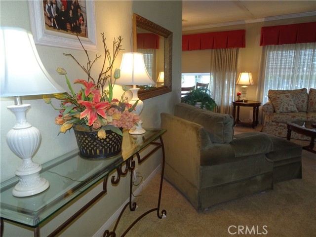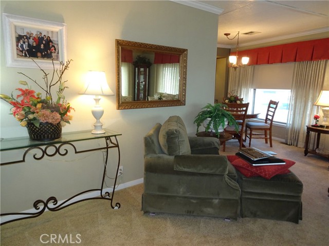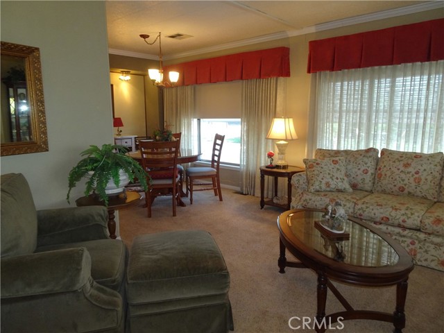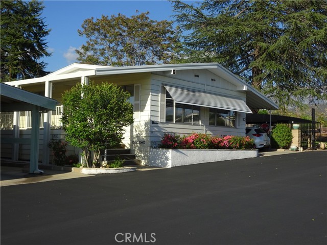 Attention RV-loving Seniors, this is a well-maintained manufactured home in Yucaipa Land Yacht Harbor. Unique senior living. The home is a two bedroom two bathroom home. Entry is from either the large covered porch or the carport. From the carport you enter the remodeled kitchen with a cooktop and double ovens for your cooking delight. If you enter one the porch side, you enter the formal living room professionally decorated with warm colors really adding to the comfort of this home the recently cleaned carpet is plush and feels luxurious. There is a formal dining room off the kitchen connected directly to the living room for entertaining ease. With just a small divider you walk into the family room/den where you can relax watching TV or your favorite sports event. The primary bedroom is just down a short hall on the right, walk-in closet behind mirrored doors, and the ensuite has a garden tub and lots of storage. Just across the hall is the second bathroom with guest access from the hall and from the well appointed guest room, which has its own walk-in closet. Outside you can plant and harvest from well-cared for beds. There are two custom sheds on the property. HOA amenities include pool and spa, dog park, and space to store your RV. If you want to understand the uniqueness of this park, read the information in the supplements.