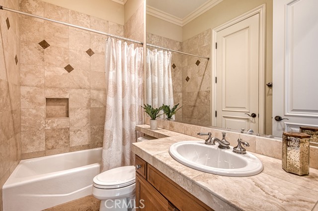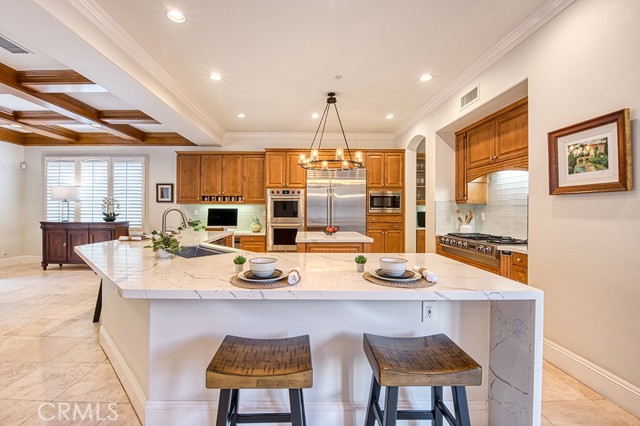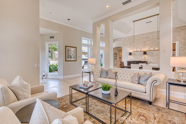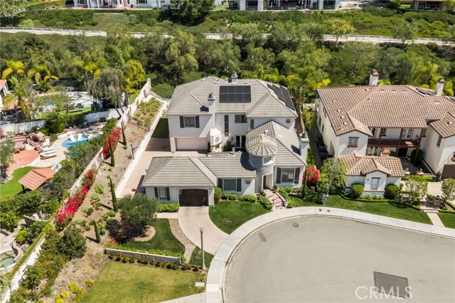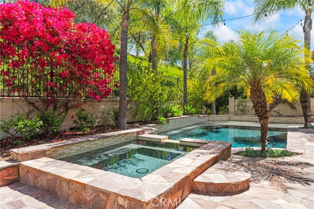 Beautifully upgraded and thoughtfully designed, this semi-custom Private Collection Coto de Caza residence is ideally situated on an expansive, private cul-de-sac 13,000 sq. ft. lot. This property features a spacious open-concept floor plan filled with natural light, complemented by soaring 10-foot ceilings, crown molding, plantation shutters, and 8-foot solid core doors throughout. Upon entering the home, you'll be amazed by the soaring ceilings that showcase a stunning entryway that leads you to the formal living and dining room. At the heart of the home, double glass French doors open to an inviting central courtyard with a fireplace, seamlessly connecting to the main living spaces, including the main level office/bedroom. The beautiful gourmet kitchen showcases quartz countertops, tile backsplash, high-end stainless steel appliances including double ovens and dual dishwashers, a walk-in pantry, and a butler’s pantry—perfectly suited for everyday living and entertaining alike. The adjacent family room sits just off the kitchen and serves as a welcoming gathering space, highlighted by rich coffered ceilings and a beautifully appointed fireplace that adds warmth and architectural character—perfect for both everyday living and entertaining. An additional main level bedroom and bathroom offers a great space for guests or in-laws to retreat to. Upstairs, the expansive primary suite with a spa-like bath features a fireplace and private balcony, and two additional secondary bedrooms feature their own en-suite and mirrored closets. A generous bonus room provides the option for a sixth bedroom, media room, or home theater. Furthermore, a loft provides a great space for an office nook or place for children to do school work. The backyard is an entertainer’s haven, complete with a PebbleTec pool and spa, BBQ center, and abundant seating areas designed for gatherings and relaxation. Additional highlights include owned solar, a fully repiped plumbing system, a four-car garage, and a gated driveway with ample space for additional parking or recreation. Experience the best of Coto de Caza, where premier living meets award-winning schools, a world-class Golf & Racquet Club, scenic sports parks, and easy access to hiking, biking, and equestrian trails. No mello roos and low tax-rate.