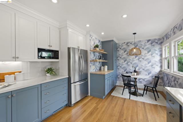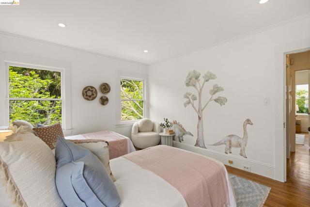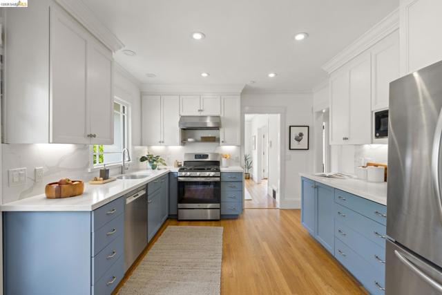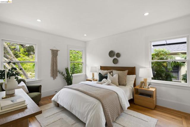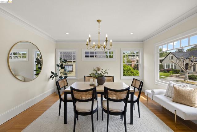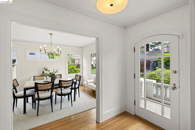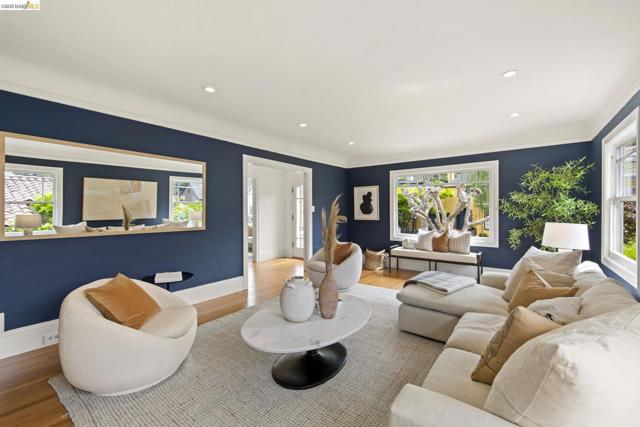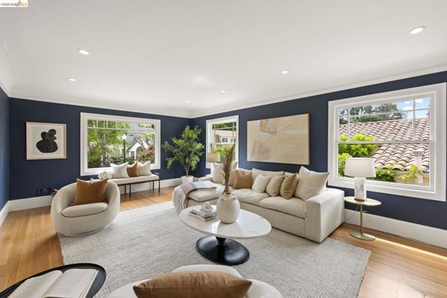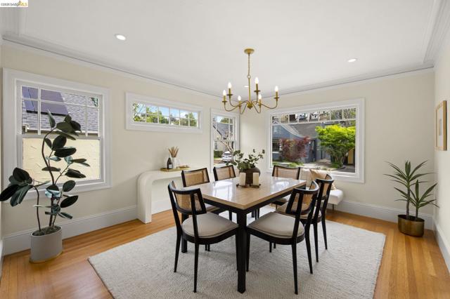 Just in time for spring, this exceptional Crocker Highlands residence blends classic 1920 Craftsman charm w/ refined updates & rare outdoor space, set on a premier street w/ artisan plate glass windows througout that fill interiors w/ natural light; elegant living room w/ coved ceilings, built-ins & glass pocket door; formal dining room w/ neighborhood outlooks; hardwood floors throughout main level; updated eat-in kitchen w/ quartz counters, stainless appliances, custom wallpaper & lighting; 3 spacious main-level bedrooms, 2 w/ garden views, plus refreshed hall bath w/ sunflower tile floors & modern finishes; lower level offers 4th bedroom, full bath, expansive den w/ built-ins & direct access to private rear gardens, plus laundry room & attached garage; Don't miss the truly rare & lavish level-out rear yard w/ lawn & patio framed by mature plantings—ideal for entertaining & play; close to Lakeshore & Grand Ave, shops, dining incl. Michelin-rated Bardo, Grand Lake Theatre, Trader Joe’s, top-rated Crocker Highlands Elementary & easy SF commute.