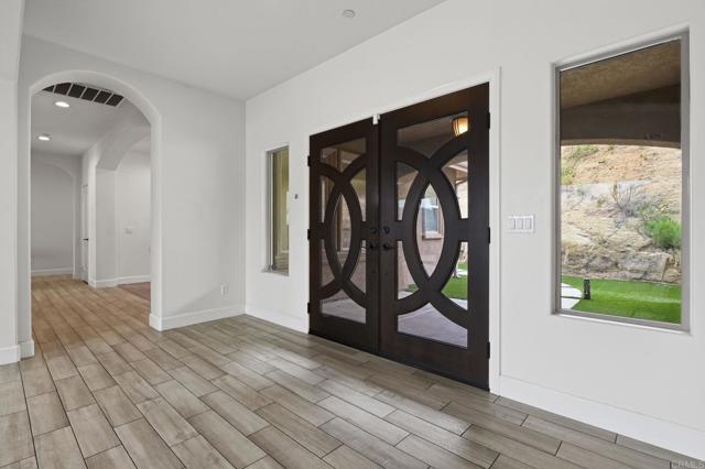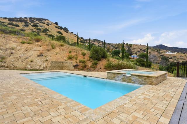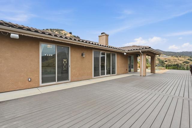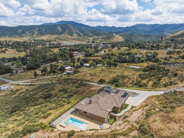 Your private canyon sanctuary awaits! Set on 3.76 pristine acres with unobstructed panoramic views, this 2016 custom estate embodies quiet luxury and indoor-outdoor living. The centerpiece of this single-story home is a stunning, naturally lit great room featuring a floor-to-ceiling stacked-sandstone fireplace and a gourmet kitchen with granite countertops, a convenient pot filler, a large island, and a spacious pantry. This open-concept area is thoughtfully designed to overlook the breathtaking Harbison Canyon landscape and seamlessly flows onto a massive 1,200 sq. ft. Trex deck, perfect for sunset gatherings and peaceful mornings above the valley. Designed for maximum privacy, the floor plan separates the primary ensuite bedroom and its double-entry walk-in closet from the two ensuite bedrooms on the opposite wing, with a versatile home office/flex space adjacent to the great room. Enjoy your resort-style saltwater pool and spa, offering spectacular mountain views and starry night skies of Dehesa Valley, enhanced by multicolored LED lights and themes. Enjoy peace of mind with a fully paid-off solar system at closing! This A72-Zoned, move-in-ready property features an epoxy-floored 3-car garage with custom cabinets, smart-home technology, and full RV hookups on spacious, adjacent land. The estate has ADU potential and is supported by two 5,000-gallon water tanks from a shared well system, as well as a fire hydrant near the driveway. Experience rural tranquility just one mile from Sycuan Resort and minutes from Singing Hills Golf Club and Sloane Canyon trailheads.