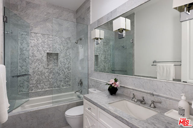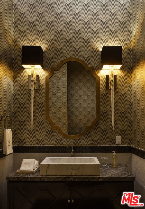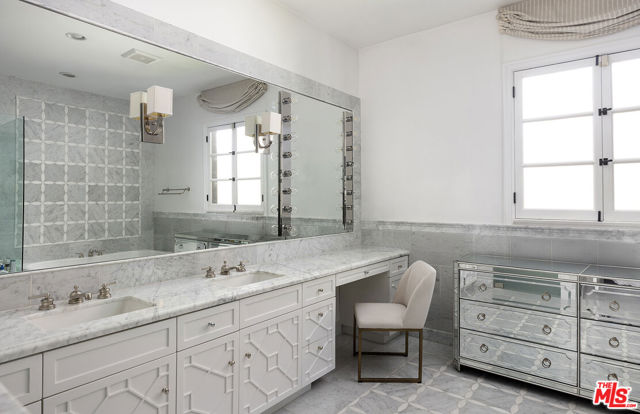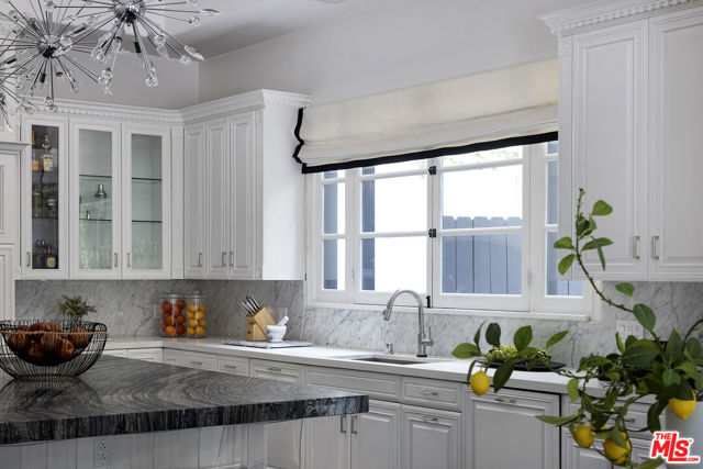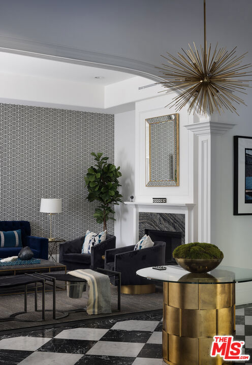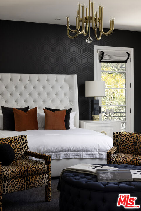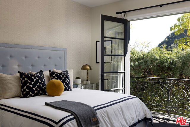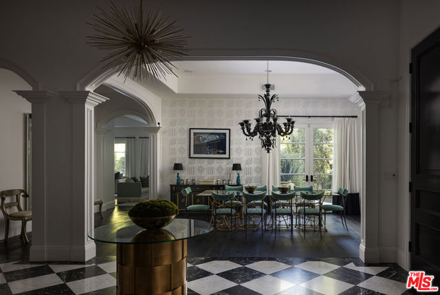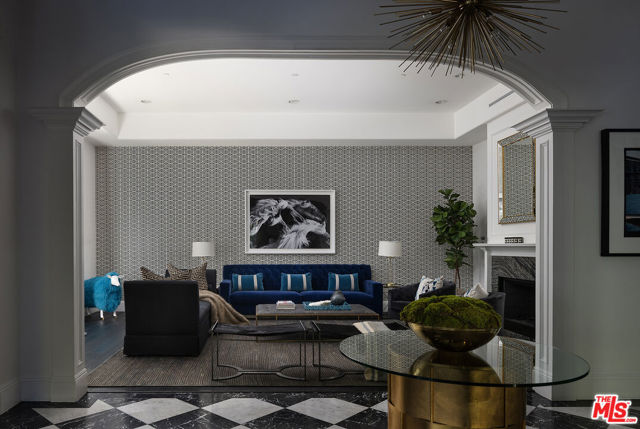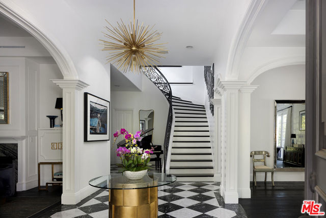 A Beverly Hills Masterpiece, Steps from Sunset... Discreetly positioned moments from the Beverly Hills Hotel, this Contemporary Mediterranean estate offers a rare convergence of professional design and effortless livability. Preston Lee's interior vision is realized throughout furniture and art by Jonathan Adler, Slim Aarons, and Fornasetti lending each room a collected, timeless character that photographs cannot fully capture. The open floor plan unfolds beneath soaring ceilings with recessed lighting, rich hardwood floors, and custom crown moldings. A dramatic black-and-white marble entry sets the tone before giving way to formal living and dining rooms sized for seated gatherings of any scale. The entertainer's family room flows naturally into a chef's kitchen anchored by an oversized center island the kind of layout where guests migrate effortlessly from cocktails to dinner without the party ever losing its momentum. French doors extend the entertaining footprint outdoors to a private patio with retractable awning, pool and waterfall, built-in BBQ, and outdoor fireplace. Whole-home surround sound covers every zone upstairs, downstairs, inside and out so the atmosphere travels with your guests wherever the evening takes them. Five bedrooms and six baths are distributed across two levels. Upstairs, the primary suite is a destination unto itself: a fireplace, generous walk-in closets, double vanities, sunken soaking tub, and an oversized shower. Three additional en-suite bedrooms with private balconies mean out-of-town guests arrive to hotel-level privacy and comfort. A dedicated gym and dance studio complete the upper floor equally useful the morning after a late night as it is for a more intentional occasion. Further amenities include a basketball court, trampoline area, three interior fireplaces, and a three-car garage. Whether you're hosting an intimate dinner, a poolside gathering, or a full weekend of guests, this home has the design, vibe and the pedigree to do it beautifully. Some homes must be experienced to be understood. This is one of them.