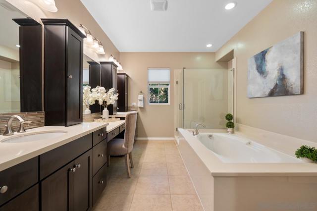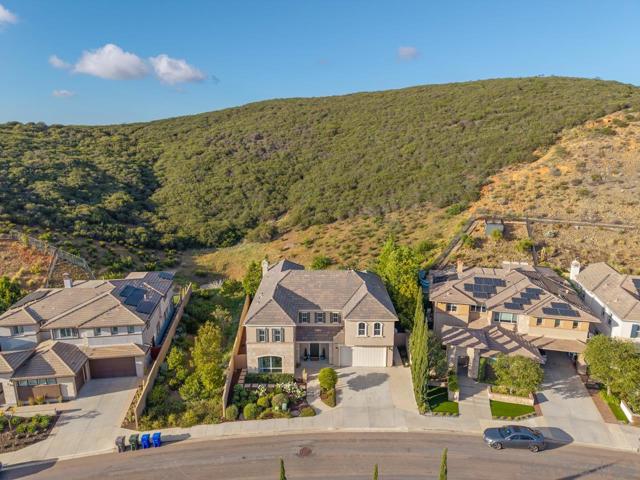 STUNNING VIEW HOME in the highly sought-after Bella Vista enclave of San Elijo Hills, ideally positioned on a premium lot backing to open space with scenic mountain views. This beautifully upgraded 5-bedroom, 4-bath home with a dedicated office and optional bonus room offers a versatile floor plan, including a full bedroom and bath on the entry level, ideal for guests or multigenerational living. Step inside to soaring ceilings and expansive windows that fill the home with natural light, creating a bright, inviting atmosphere. The open layout seamlessly connects the main living areas, perfect for everyday living and entertaining. The gourmet kitchen features granite countertops, a glass tile backsplash, stainless steel appliances, and a large center island. Enjoy indoor-outdoor living with sliding doors opening to a private backyard retreat complete with a covered patio, mature landscaping, low-maintenance turf, and a spa, all set against a tranquil greenbelt backdrop. Upstairs, the spacious primary suite offers a private view deck, perfect for relaxing. Close to parks, trails, top-rated schools, Town Center, dining, and beaches. This home truly has it all! STUNNING VIEW HOME in the highly sought-after Bella Vista enclave of San Elijo Hills, ideally positioned on a premium lot backing to open space with scenic mountain views. This beautifully upgraded 5-bedroom, 4-bath home with a dedicated office and optional bonus room offers a versatile floor plan, including a full bedroom and bath on the entry level, ideal for guests or multigenerational living. Step inside to soaring ceilings and expansive windows that fill the home with natural light, creating a bright, inviting atmosphere. The open layout seamlessly connects the main living areas, perfect for everyday living and entertaining. The gourmet kitchen features granite countertops, a glass tile backsplash, stainless steel appliances, and a large center island. Enjoy indoor-outdoor living with sliding doors opening to a private backyard retreat complete with a covered patio, mature landscaping, low-maintenance turf, and a spa, all set against a tranquil greenbelt backdrop. Upstairs, the spacious primary suite offers a private view deck, perfect for relaxing. Close to parks, trails, top-rated schools, Town Center, dining, and beaches. This home truly has it all!