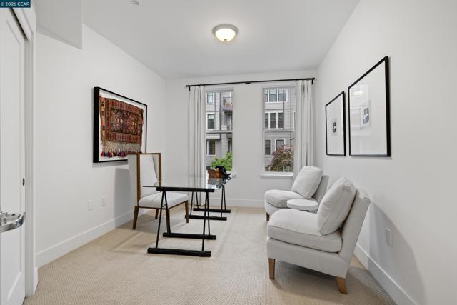 Welcome to this beautifully appointed 3-bedroom, 2-bathroom end-unit residence, ideally situated on the second floor with serene courtyard and creek views. Built in 2017, this modern home offers the perfect blend of style, comfort, and convenience in the heart of Lafayette. Flooded with natural light from expansive windows, the open-concept layout creates a bright and inviting atmosphere throughout the spacious living and dining areas. Thoughtfully designed with high-end finishes, the home features laminate wood flooring, new carpet in the bedrooms, and fresh interior paint, offering a truly move-in ready experience. The primary suite serves as a private retreat, complete with a walk-in closet and a beautifully appointed en-suite bath featuring dual sinks, a soaking tub, and a large walk-in shower. Additional amenities include in-unit laundry, central air conditioning, secure building access, and elevator convenience. Tandem parking spaces are ideally located near the elevator, adding ease to everyday living. Enjoy the best of Lafayette just moments from vibrant restaurants, cafés, boutique shopping, BART, and the scenic Lafayette Reservoir. With top-rated schools and easy freeway access, this home offers an exceptional lifestyle in one of the East Bay’s most desirable areas.