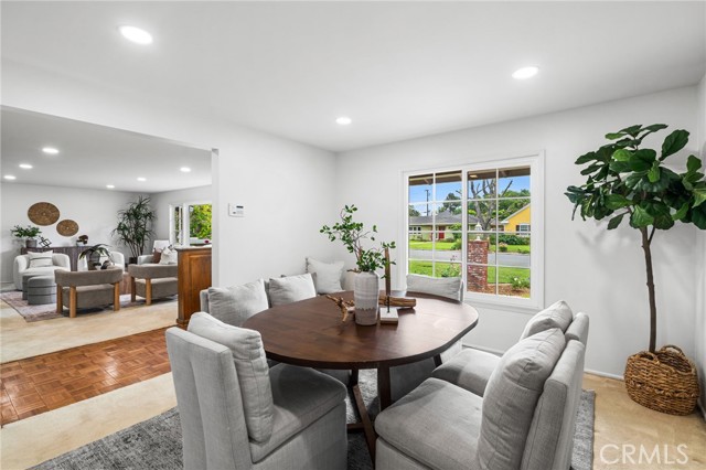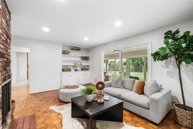 Ideally situated on one of the area's most sought after streets. Located just west of the historic Floral Park neighborhood in the desirable Fisher Park community, this charming single-story home offers 2,279 square feet of comfortable living space on a spacious 10,350 sq. ft. lot—an area known for its quiet, tree-lined streets, larger lots, and classic mid-century and custom homes. Offering a similar sense of character and charm as neighboring Floral Park and West Floral Park, Fisher Park provides a more relaxed residential setting with less through-traffic while remaining close to parks, dining, and local amenities. Freshly painted inside, the home features a versatile layout with a spacious front living room complete with a fireplace and views of the peaceful front yard, creating a warm and inviting first impression. A formal dining room sits just off the entry and adjacent to the generously sized kitchen, which includes an informal dining area ideal for everyday living. Updated electrical and recessed lighting enhance the home with modern comfort and functionality. Toward the back of the home, a flexible den or third bedroom overlooks the backyard, perfect for a home office, guest space, or additional living area. An enclosed 237 square foot patio room further expands the home's functionality—ideal for entertaining, hobbies, a playroom, a gym, or creative use. The private backyard features a patio, grass yard, and mature trees and gardens, offering a peaceful outdoor setting for relaxing or entertaining. Two generously sized bedrooms with large closets and dedicated bathrooms provide comfort and privacy, while the home’s charming curb appeal and prime location complete this exceptional opportunity in one of Santa Ana’s most desirable residential enclaves.