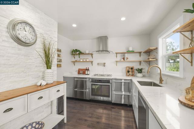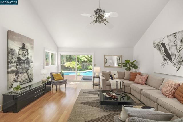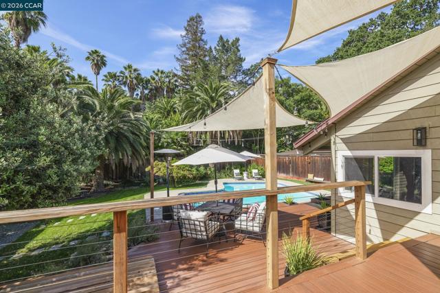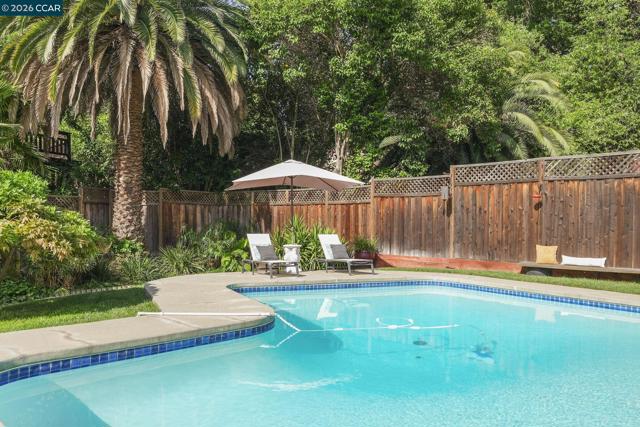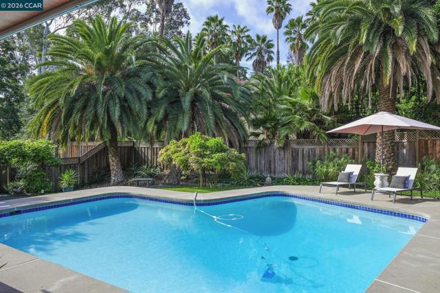 NEW Listing w/WC schools & Las Lomas High! This unassuming rancher will delight and surprise w/its distinctive mid-century designs and finishes so tastefully done throughout the home. The European-style kitchen is sleek and modern with refrigerator/freezer drawers (a must see!), a very cool SMEG cooktop and ample counter and storage space. The interior offers 2 large living rooms - one at the front and one at the rear. The rear living area features soaring ceilings and skylights and is the perfect party/play room, as it opens to the home’s GORGEOUS backyard oasis. You’ll revel in lush greenery and a spacious pool, an in-deck spa, beautiful palm trees and plenty of space for entertaining, relaxation & play. Don’t miss the handy workshop (or perhaps a future office/workout space?). After enjoying the spa, the primary bdrm offers a very private location, w/ a luxurious bathroom, including a large shower and a jetted tub for end-of-day relaxation. The 2 secondary bdrms are located near the 2nd bathroom, also beautifully updated and ready for guests. An owned solar system adds tremendous value and the location close to downtown Walnut Creek, WC and Acalanes schools, and easy access to freeways & BART make this home a MUST SEE & a top value in all of Walnut Creek! OPEN TUES 4/14 10-2