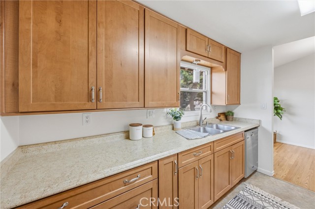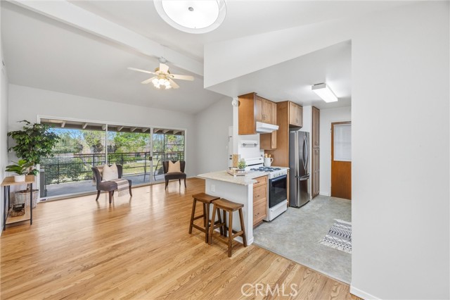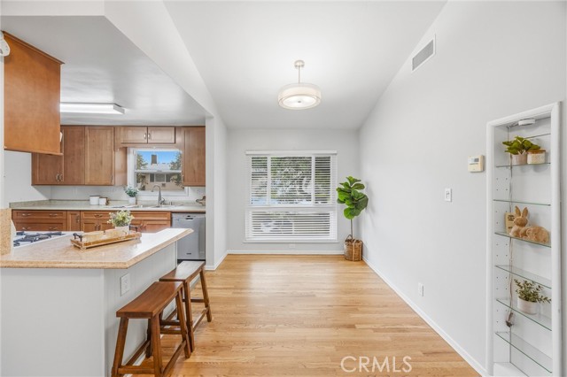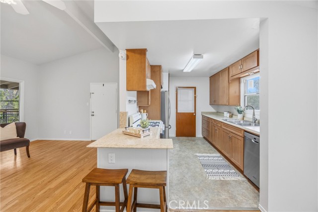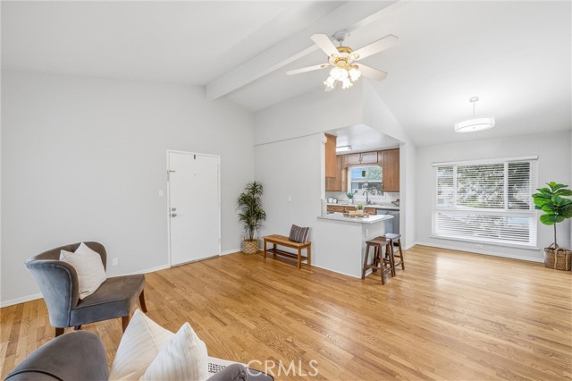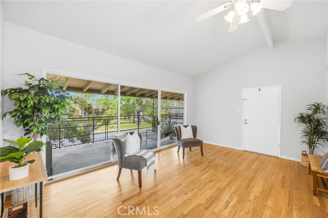 REMODELED REDLANDS RETREAT w/ MASSIVE BALCONY, WOOD FLOORS, SUNSET VIEWS, VAULTED CEILING & COMMUNITY POOL in the EXCLUSIVE OWNER-OCCUPANT BRAEMAR COMMUNITY. There are places that simply feel right the moment you arrive. Braemar is one of them: a quiet, owner-occupant community where no rentals are permitted and the pride of ownership runs deep. Tucked along the edge of the property, this remodeled two bedroom, one bath end unit carries the calm of Redlands at its best. Wood floors, new windows, golden afternoon light. Some places ask you to settle in. This one already feels like home. Step inside and the calm arrives immediately. Warm wood floors run throughout, grounding every room in natural warmth and easy elegance. Light moves through new dual-pane windows, filling the space with the kind of quiet brightness that makes mornings feel like a gift. The fully remodeled kitchen is the heart of it all with finishes that strike the perfect balance between timeless and current. This is a kitchen that inspires slow Sunday breakfasts, spontaneous dinner parties, and flowers left on the counter just because. The living room with its vaulted ceiling is open, grounded, and made for exhaling. Both bedrooms continue the softness, wrapped in natural light and a stillness that invites long, restful nights. The bright refreshed bathroom offers the quiet luxury of a space that feels genuinely cared for. Then there is the balcony. Massive, private, and oriented toward the western sky, it delivers the kind of sunset views that stop you mid-sentence. Imagine evenings here with a glass of wine as the sky turns amber and rose, or quiet mornings with coffee while Redlands wakes up below. String lights, outdoor dining, a hammock, a garden of potted herbs. Whatever vision you carry, this balcony can hold it. The Braemar community adds even more to love: a sparkling pool, covered parking, beautifully maintained grounds, and a shared garden where neighbors grow and exchange homegrown fruits and vegetables. HOA dues cover fire insurance, water, sewer, trash, landscaping, exterior maintenance, in-wall plumbing and electrical, hot water heaters, and full use of all laundry facilities, keeping the logistics of life simple so your attention can go where it belongs. Minutes from ESRI, downtown Redlands, beloved local cafés, and weekend farmers markets, this home sits right at the intersection of community and calm. Maybe this is where your story begins.
