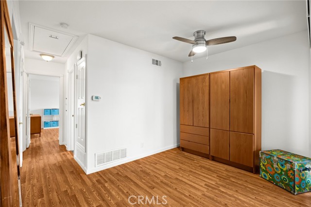 Welcome to this beautifully updated 2-bedroom, 1-bath upper-level corner unit in the highly desirable Broadmoor community in Placentia. With no neighbors below, this home offers exceptional privacy and a peaceful living environment surrounded by lush landscaping and mature trees. Step inside to find wood-look laminate flooring throughout, with added waterproof protection in the kitchen and bathroom. The remodeled kitchen and bathroom cabinetry provide a fresh, modern feel, while dual-pane windows enhance energy efficiency and comfort. The home also features a newer A/C unit (approximately 6–7 years old) to keep you comfortable year-round. Get ready to store plenty of extras in your attic with a pull down ladder. Attic has had plywood added for convenience of storing items. Enjoy your spacious private balcony, perfect for relaxing or entertaining. The 4-burner gas range and oven make home cooking a breeze. Additional highlights include a one-car garage with extra storage space and convenient proximity to the community laundry area. The Broadmoor community is known for its well-maintained grounds, greenbelts, and inviting amenities, including a swimming pool and peaceful walking paths. The HOA offers exceptional value with low monthly dues covering water, trash, and earthquake insurance. Located within the highly regarded Placentia, Yorba Linda Unified School District, this home is ideal for a variety of lifestyles. Its prime location near the 57 freeway provides easy access to Cal State Fullerton, Brea Mall, local dining, shopping, and nearby parks such as Tri-City Park. Move-in ready and a fantastic opportunity to own a charming home in this sought-after, rarely available community.