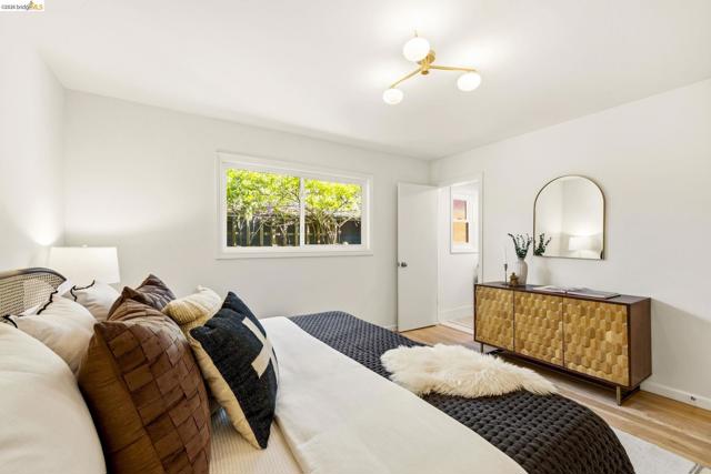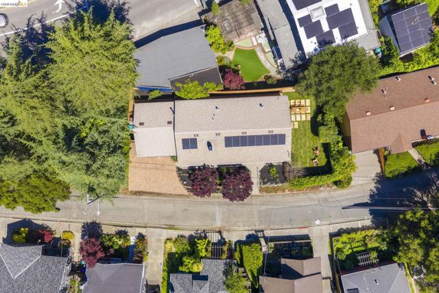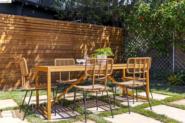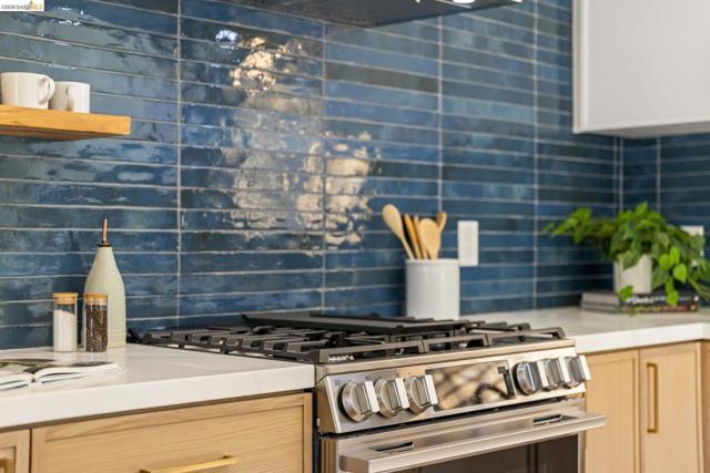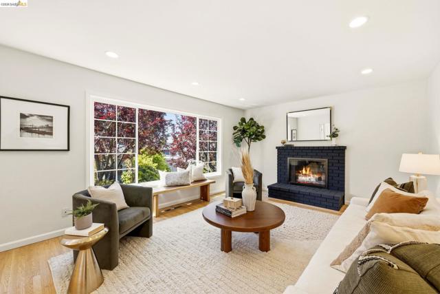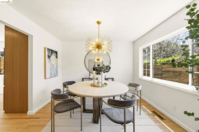 Tucked along one of the neighborhood's coveted streets, this single-level ranch offers serene, Shangri-La seclusion while remaining just steps from one of Oakland's most celebrated urban corridors. Michelin-starred dining, a curated wine bar, Fenton's Creamery, Piedmont Grocery, & the iconic Piedmont Theatre are all mere moments away: a Walker's Paradise with a 94 WalkScore (WalkScore.com) to prove it. The home's single-level floor plan is both generous & gracious, w/light-filled living & dining rooms that flow effortlessly and reward easy, elegant living. A wood-burning fireplace anchors the living room, while custom lighting throughout lends a refined, curated atmosphere. The recently renovated kitchen feat. quartz countertops, a center island, earth-tone cabinetry, stainless appliances, & striking blue glaze horizontal tile backsplash. Direct access from the kitchen leads to a private rear patio & lush yard, ideal for alfresco entertaining or quiet evening retreats. Three well-proportioned bedrooms incl. a primary suite w/a stylishly appointed en suite bath. The hall bathroom is equally impressive, feat. a vertical tile shower surround & bespoke finishes. Seller-owned solar panels, hallway laundry room, an EV charger, 2-car attached garage w/direct interior access & storage.