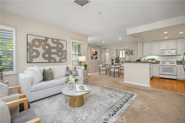 Experience refined living in the highly sought-after community of Quail Hill, where comfort, convenience, and an exceptional lifestyle come together in this beautifully upgraded 2-bedroom, 2-bath residence. Perfectly situated in one of Southern California’s most desirable locations, Quail Hill offers unmatched connectivity—just moments from the 5, 405, and 133 freeways, approximately 7 miles to the beaches of Laguna Beach, and only 8 miles to John Wayne Airport. The community is also part of the nationally acclaimed University High School district and is surrounded by protected open space, offering miles of scenic hiking and biking trails for those who enjoy an active, outdoor lifestyle. Set within a charming, garden-inspired enclave, the home welcomes you with tranquil pathways, lush landscaping, and a peaceful courtyard setting. Inside, light-filled living spaces feature an open-concept design with soaring ceilings, soft neutral tones, and a cozy fireplace—creating an inviting atmosphere for both everyday living and entertaining. The thoughtfully designed kitchen showcases granite countertops, crisp white cabinetry, and generous workspace, seamlessly connecting to the dining and living areas. Upstairs, two spacious bedrooms provide comfort and privacy, including a primary suite with abundant natural light and a well-appointed en-suite bath. Additional highlights include plantation shutters, recessed lighting, and a versatile floorplan suited for modern living. The location of 33 Flowerbud within Quail Hill is equally exceptional—nestled among beautifully tree-lined streets, just one block from award-winning Alderwood Elementary, a half block to Commons Park, the resort-style pool, and fitness center, and only a few blocks to the Quail Hill Shopping Center with dining, coffee, and everyday conveniences. A rare opportunity to enjoy elevated living in one of Irvine’s most ideally located and healthy lifestyle communities.