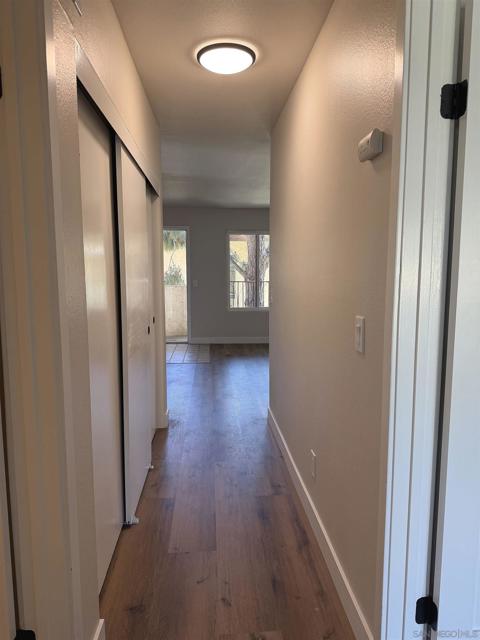 Experience coastal living at its finest in this fully renovated, end unit at Mission Bay Condos—This 2-bedroom, 2-bathroom, 1,102 sq ft single-level home is filled with natural light and designed with a modern coastal aesthetic. The open-concept layout features new light oak luxury vinyl plank flooring, fresh interior paint, and a spacious living area with built-in cabinetry. The beautifully remodeled kitchen showcases granite countertops and new ss appliances. Both bathrooms have been tastefully updated. The primary suite offers a walk-in closet, ensuite bath, and private balcony. Additional highlights include in-unit laundry with side-by-side capacity, dual-pane windows and slider, generous storage, and only one shared wall for added privacy. This unit includes two assigned parking spaces (one covered with storage, one uncovered) conveniently located near the elevator. The gated, pet-friendly community offers resort-style amenities including a pool, spa, BBQ area, and well-maintained grounds. HOA covers water, trash, termite, and exterior maintenance. Ideally located in the vibrant Bay Park neighborhood, you’re just minutes from beaches, trolley access, USD, freeways, and an array of popular restaurants, coffee shops, and breweries. Whether you're a first-time buyer or seeking a low-maintenance investment, this move-in-ready home is a rare opportunity in one of San Diego’s most desirable communities.