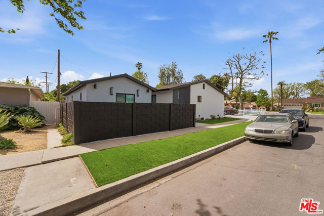 Situated on a desirable corner lot in Reseda, this beautifully reimagined property offers a rare and versatile three-unit configuration, ideal for both end-users and investors. The property consists of a main residence boasting a 4 bedroom 3 bathroom, a detached 2-bedroom, 2-bathroom ADU, and a 1 bed 1 bath junior ADU, providing exceptional flexibility for multi-generational living or income potential.The main home features approximately 1,525 square feet, showcasing a clean, modern design with an open-concept layout, wide-plank wood flooring, recessed lighting, and abundant natural light. A sleek fireplace anchors the living space, while the kitchen is appointed with custom light wood cabinetry, quartz countertops, stainless steel appliances, and a spacious peninsula ideal for everyday living and entertaining.The detached ADU offers a private 2-bedroom, 2-bathroom layout, perfect for rental income, guests, or extended family. The junior ADU provides additional flexibility as a studio-style living space, ideal for a home office, rental, or creative use.The exterior is equally impressive, featuring a modern two-tone faade, a fully fenced front yard with a classic white picket fence, and ample parking with a large driveway. The outdoor spaces provide room to relax, entertain, or further customize.Centrally located near shopping, dining, and major commuter routes, this move-in-ready multi-unit property presents a unique opportunity with strong income potential in a well-established Reseda neighborhood.
