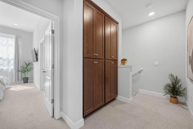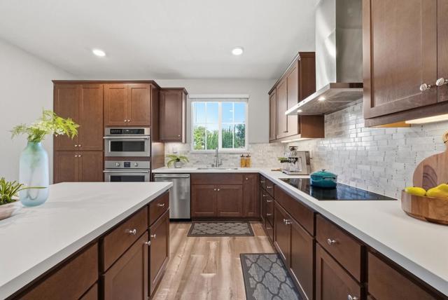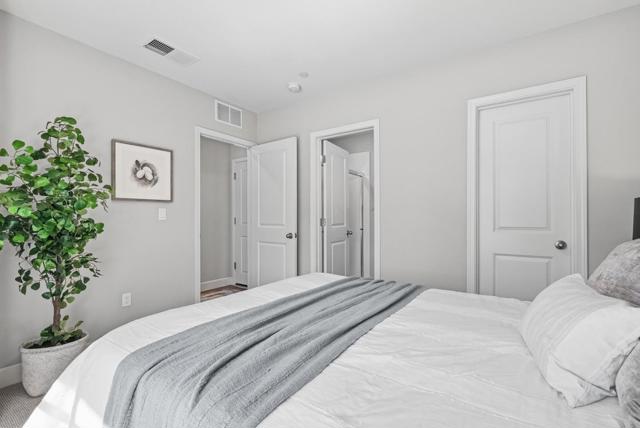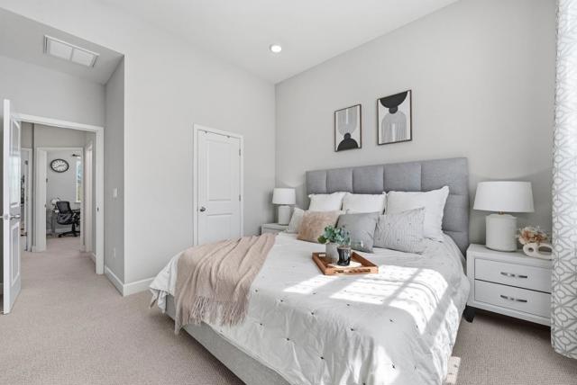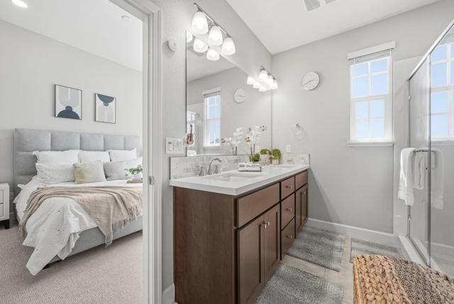 Built in 2020, this well-maintained PUD townhome blends contemporary design with modern comfort in the heart of Silicon Valley. Featuring 4 beds, 3.5 baths, 1,749 sqft of thoughtfully designed living spaces, the home includes double primary suites, spacious open layouts, and high-end finishes throughout, along with a private balcony, in-unit laundry room, a side-by-side two-car garage, and plenty of guest parking spaces. The ground level features a private bedroom suite with a full bath and a generous closet, ideal for guests, rental income, or multigenerational living. On the second level, enjoy a bright open-concept living and dining area with a chef's kitchen. The kitchen is equipped with Mahogany shaker cabinets, Silestone quartz countertops, a full mosaic backsplash, and premium stainless steel appliances, including an induction cooktop, hood, microwave, wall oven, and dishwasher. The third level offers a second primary suite along with two additional bedrooms and a full bath, providing flexibility for families, guests, or work-from-home needs. A dual-zone heating and cooling system provides year-round comfort. HOA covers garbage. Easy access to VTA, Hwy 101, 237, and 85. Just minutes from Google, Meta, Nvidia, and other major tech companies.