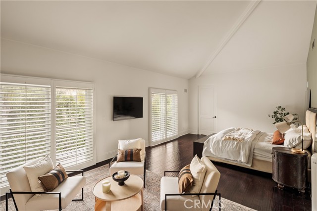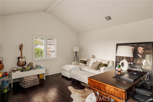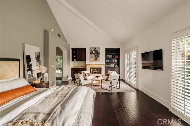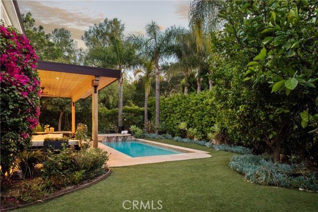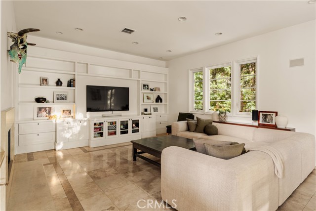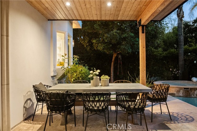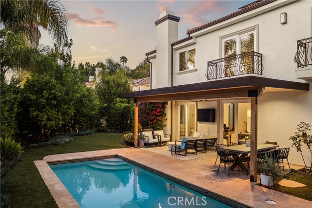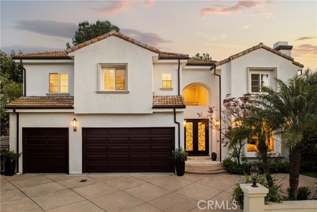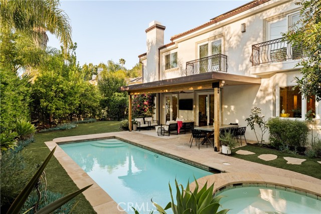 Situated within an exclusive gated enclave of just four homes with no HOA in Calabasas, this 5-bedroom, 4.5-bathroom residence offers approximately 4,365 square feet of light-filled living on an 8,654 square foot lot. A warm, inviting entry leads into interiors defined by soaring ceilings, arched architectural details, and expansive windows that fill the home with natural light. The layout is both functional and refined, with formal living and dining spaces complemented by an open-concept family room featuring custom built-ins and a fireplace. The updated kitchen is designed for everyday living and entertaining alike, with white cabinetry, generous counter space, a central island that opens seamlessly to the main living areas, and the added benefit of solar panels for enhanced energy efficiency. The main level includes a guest suite, laundry room, and a converted bonus room offering flexible use as an office, gym, media room, or playroom, along with direct access to the attached two-car garage equipped with a Tesla EV charging plug. Upstairs, the primary suite offers a true retreat, featuring vaulted ceilings, a fireplace sitting area, and private balcony access. The spa-inspired bathroom is complete with dual vanities, a soaking tub, and a glass-enclosed shower, creating a calm, resort-like feel. Additional bedrooms are spacious and well-appointed. The backyard is designed for effortless indoor-outdoor living, featuring a covered patio with wood-paneled ceiling, a pool and elevated spa, multiple lounging and dining areas, and lush, mature landscaping that provides both privacy and a serene setting. Ideally located just minutes from The Commons at Calabasas, offering premier shopping, dining, and entertainment, as well as scenic hiking and outdoor recreation in Malibu Creek State Park. With convenient access to Malibu beaches and nearby freeways, the home provides both everyday convenience and a true Southern California lifestyle. Located within the highly regarded Las Virgenes Unified School District, this home offers a rare combination of space, comfort, and prime Calabasas living.