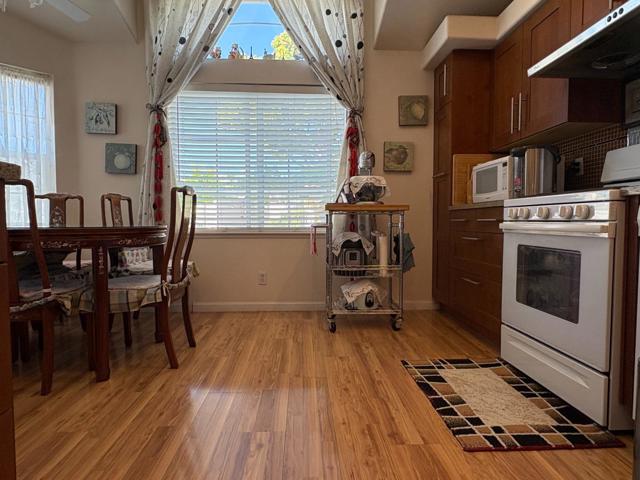 Location! Location! Location! Central Sunnyvale within walking distance to many convenient locations for dining and shopping. Great for work commuters. Beautiful 2 story contemporary style home. 2 bedrooms and full bath upstairs. Additional bedroom with full bath downstairs. Separate entrance for downstairs bedroom. Very safe and quiet park. Friendly neighbors.Located in Sunnyvale, this 3-bedroom, 2-bath home offers 1,286 sq ft of living space. The kitchen features an eat-in dining area and is equipped with a gas oven range, hood over range, dishwasher, and refrigerator. Laundry hookups are available for convenience. The property is part of the Sunnyvale elementary school district. This residence provides functional living with essential amenities in a well-established community.