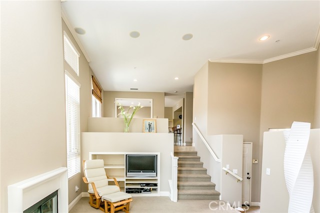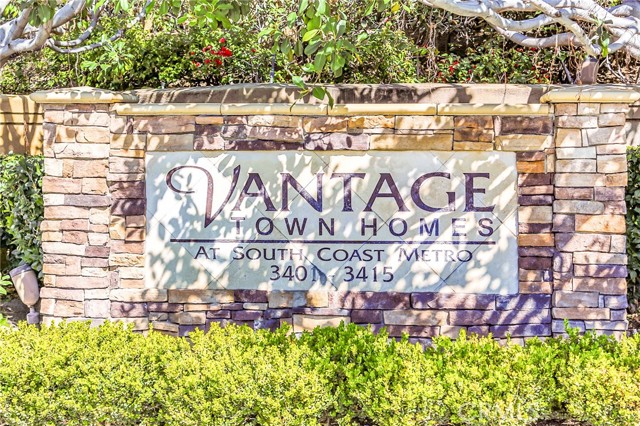 Spectacular contemporary like new corner end unit. Close proximity to airport, South Coast Plaza, 55, 405 and 73 freeways and so much more. Largest model in gated Vantage community. This is one of the nicest upscale communities to live in and there is nothing like this anywhere on the market! This model rarely comes up! It features sweeping high ceilings, open floor plan and a view of the pool from the kitchen window. Private patio and large size bedrooms with 2 walk in closets in the master loaded with built ins. Surround sound in living room. Upgraded kitchen with granite counters and stainless steel appliances. Flooring looks new with ceramic tile in kitchen, dining, den and bathrooms. A truly excellent floor plan with attached oversized 2 car garage. Custom framed opening between den and dining room. This is a must see. Call now, Don't miss it! Includes Refrigerator, washer and dryer.