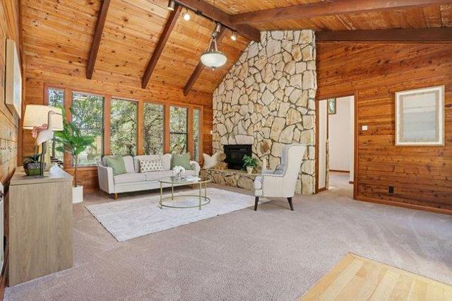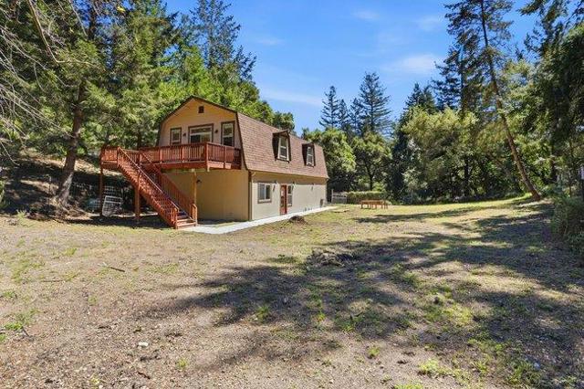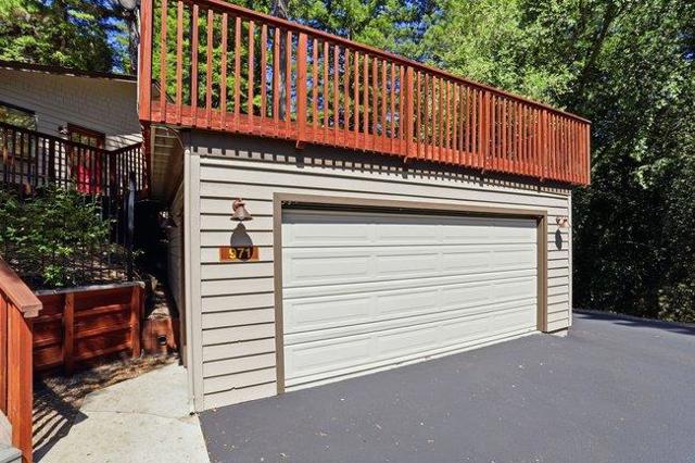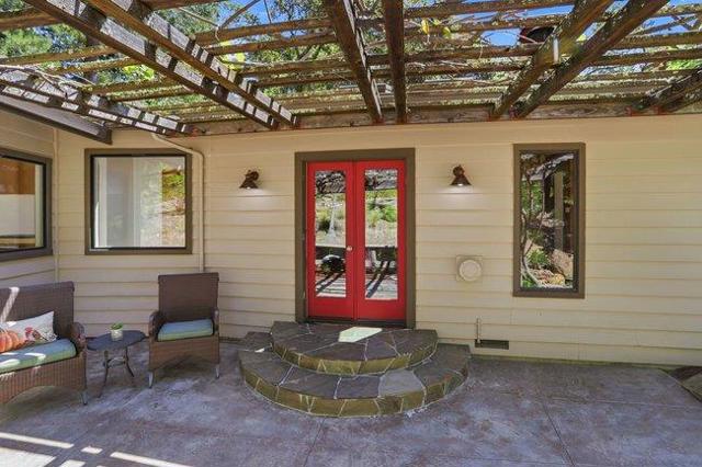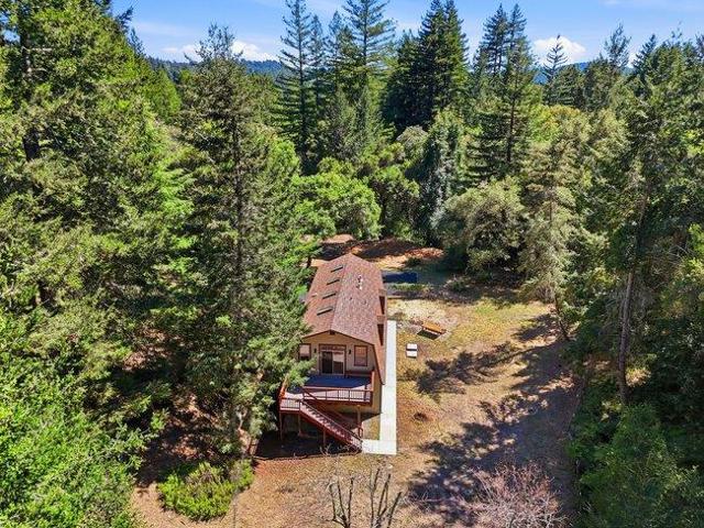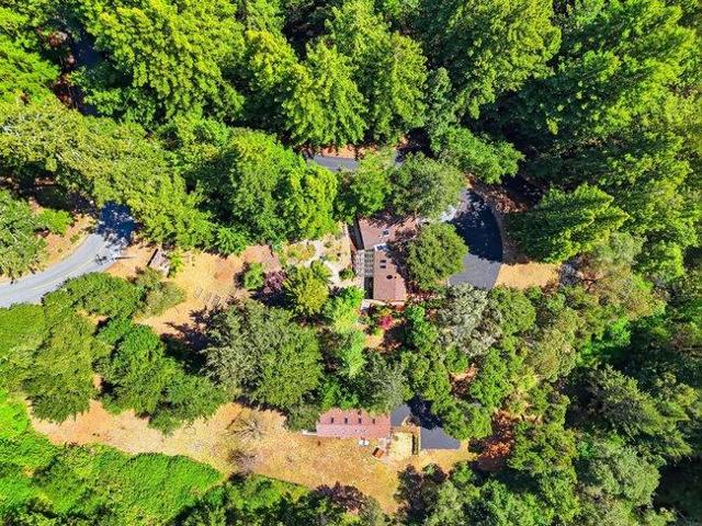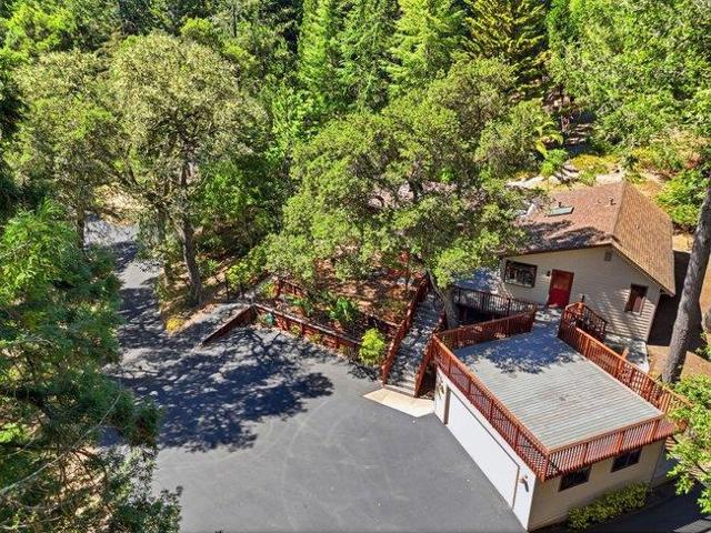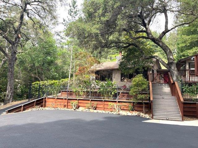 Welcome to "Sunlit Glen", a Carmel-style family compound nestled on 2.91 sunny acres above Scotts Valley. Gently terraced grounds, winding pathways, and multi-level gardens create a private and peaceful setting. The main home is approx 1600sf, 3 bedrooms/2 baths. The family room has a beautiful floor-to-ceiling stone fireplace with fireplace insert. The kitchen has a new gas range, stainless steel appliances, ample storage, and a breakfast nook with garden windows. The primary bedroom has a fireplace and en-suite bath. Two additional bedrooms off the kitchen wing share a bathroom that also serves as a laundry room. The kitchen door leads to the 2-car detached garage. Also located on the property is a separate ADU - a private 2-story barn conversion with its own driveway, utilities, and address (973). It offers a modern kitchen with pantry, family room, and a large bedroom with a walk-in closet and en-suite bath. At the lower level is a two-car garage, bathroom, and flexible space for storage or gym. In the adjoining meadow there is room for an orchard, gardens, and/or animals. At the main entrance of the property stands the original Weston Road gate - a historical artifact. "Sunlit Glen" is a special property and is now ready for its new owners to enjoy for generations to come.