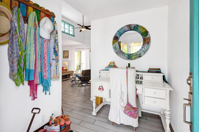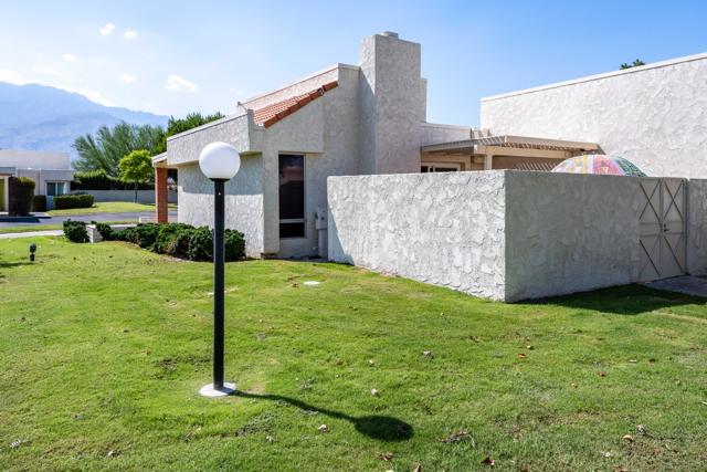 This end-unit condo at The Fairways offers privacy, natural light, and a charming ''tiny house'' feel. Clerestory windows enhance the bright, airy interior, high ceilings while a cozy gas fireplace adds warmth and character. The home features two outdoor spaces, one off the kitchen sliding glass door and the other is a west-facing patio with mountain views and an expansive approximately 400 sq. ft. patio perfect for relaxing or entertaining.The kitchen was renovated in 2025, and a bathroom remodel was done in 2020, providing modern updates. Additional highlights include assigned parking and a desirable layout that maximizes space and comfort and an attic for storage. The Fairways offers 8 pools, a Clubhouse, Tennis and Pickleball courts.Ideally located across from the CV Link and Tahquitz Creek Golf Course, offering easy access to outdoor recreation, biking, and scenic surroundings.The current land lease extends through 2071.