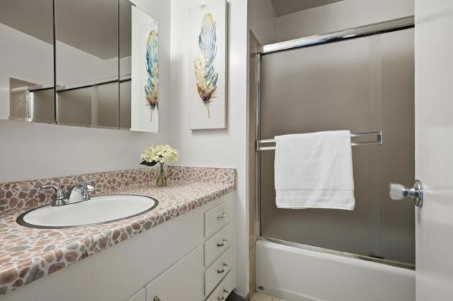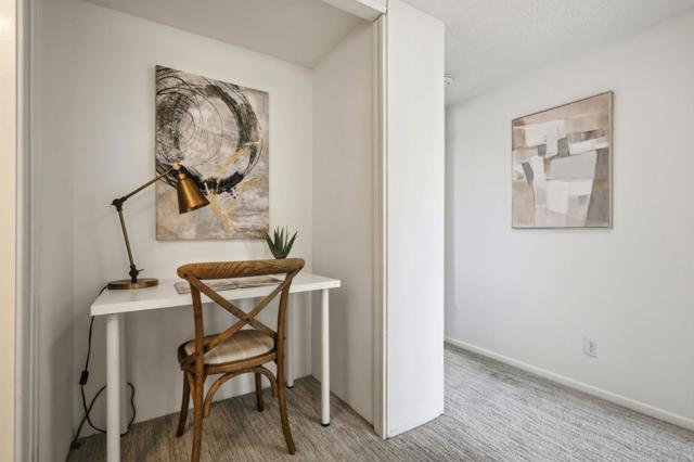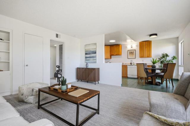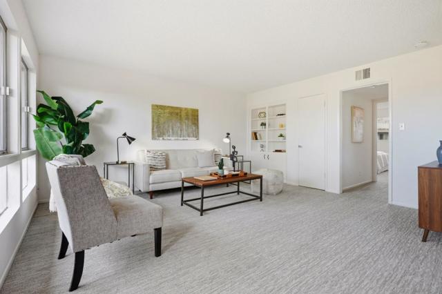 Why rent when you can own?! This top floor unit offers a private entrance that opens directly to a large balcony, ideal for those who prefer outdoor entry over a shared hallway. The interior is bright and airy, with oversized windows in both the kitchen and living room. The eat-in kitchen and living area are adjacent to the balcony, extending the living space and maximizing natural light. The primary bedroom includes an en-suite bathroom with a shower stall, while the hallway bathroom has a full tub. The unit was recently updated with fresh paint, new carpeting, and a new stove and refrigerator. Additional features of this home include a dedicated covered parking spot and ample street parking. Two spacious storage lockers are conveniently located next to the parking space. This property offers a functional living environment in a well-connected Peninsula neighborhood, providing close proximity to major retail hubs like Park Place Plaza and primary transit corridors, including Highways 101 and 92. This is a pet friendly community, 1 assigned parking spot, and community laundry room.