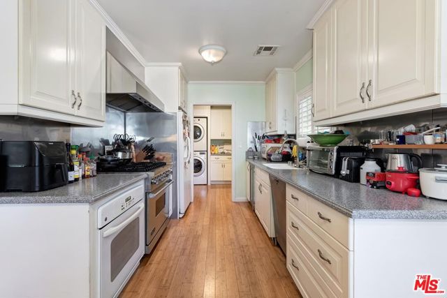 Gorgeous Culver City compound in the heart of the vibrant Art District where style, creativity, and convenience converge. Tucked just north of Washington Blvd and moments from Helms Bakery, Apple's new campus, and downtown Culver City, this gated retreat offers rare privacy in one of the Westside's most dynamic neighborhoods. A lush, ivy-covered facade and charming front patio welcome you into a home that blends warmth and functionality. Inside, sunlit living spaces feature hardwood floors and plantation shutters, with a flexible dining area that easily doubles as a family room. The kitchen is both inviting and practical, complete with white cabinetry, granite countertops, a breakfast nook, and a statement 36" Viking range. The home offers three bedrooms, including a spacious primary suite with a sitting area, walk-in closet, and glass doors that open seamlessly to the outdoor space creating that effortless indoor-outdoor flow. At the rear of the property, a guest studio with its own kitchen and spa-like bath offers incredible versatility ideal for guests, a home office, or rental income potential. The yard is designed for both relaxation and entertaining, with a large patio and mature hedging for added privacy. Additional highlights include a gated driveway with parking for multiple cars and two oversized storage sheds. A rare opportunity to own a private, flexible compound in one of Culver City's most exciting and walkable enclaves, surrounded by coffee shops, restaurants and art galleries.