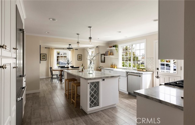 Rarely does a home come to market that tells a story as compelling as 33891 Malaga Drive. Located in the heart of the historic Lantern Village on a very desirable double lot (lots 26 & 27), this property is a unique offering on so many levels. One of the earliest dwellings built in the area in 1946, the home has been lovingly cared for over the decades. Since acquired by its current owners in 2014, this charming residence has been comprehensively reimagined inside & out-transformed with the care & intentionality of a newer build while preserving the charm & character that only an older home can provide. Over the past decade, the owners have invested in nearly every system & surface: a designer kitchen anchored by professional Thermador appliances & custom cabinetry, a spa-caliber primary suite created by opening the floor plan & finishing it with quartz, bespoke cabinetry, & a CA Closets system. Fully remodeled bathrooms on both levels, dedicated home theater, new Milgard windows, new exterior siding, new CertainTeed roof with Velux skylight, new gas logs in 2/3 fireplaces, new tankless water heater, a hardwood Timber Tech entry deck, custom stair railings, refinished Douglas Fir hardwood flooring upstairs-among many other improvements. The result is a property that delivers the turn-key finish & elevated detail of a highly-remodeled home, set against the backdrop of one of OC’s most sought-after coastal communities. A massive double lot offers ample outdoor space including two large/flat artificially-turfed areas front & back, a deck with covered spa, several patios including street-level - perfect for fireside lounging, and a rustic-country gravel lounging area in the backyard. A wrapping driveway offers uncommon private parking for multiple vehicles (6+) on site & leads to a rare 3-car garage. Other values include solar power, reimagined hard & softscaping, fireplaces on all three levels, whole-house fan & water softener. Ideally located within minutes walking to miles of coastal beach trails & access, nearby the Lantern District town center with multiple restaurants & shopping, the local farmers' market among other fun community events, walkable to the Dana Point Harbor (major renovations in process), great surf nearby at Doheny State Beach & Salt Creek, parks, & truly amazing year-round weather. An updated storybook home located in the highly-desired Lantern District on a double lot - this is truly a rare find!