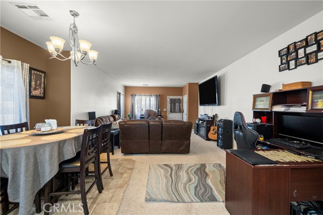 Welcome home! This property not only helps you save money with fully paid-off solar panels, but it also offers excellent income potential. A permitted addition features an extra bedroom and bathroom with its own private entrance—perfect for rental income, extended family, guests, or even a private home office setup for remote workers or business owners. Step inside to discover high ceilings and an open-concept living area that seamlessly connects to the kitchen, creating a bright and inviting space for everyday living and entertaining. The main home includes 4 bedrooms and 2 bathrooms, including a primary suite, along with the added bonus room and bathroom. Additional features include indoor laundry, a spacious 2-car garage, and a large driveway providing plenty of parking. Enjoy outdoor living with a welcoming front patio and a low-maintenance backyard fenced by cinder block walls. Conveniently located just minutes from the 14 freeway, this home is ideal for commuters while still offering comfort, flexibility, and income opportunities.