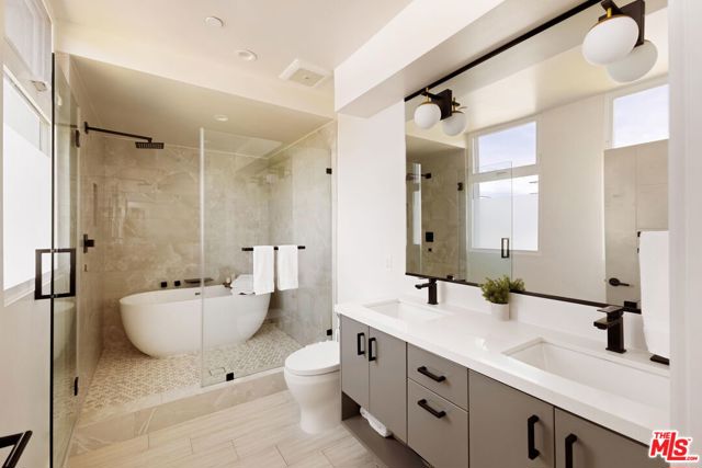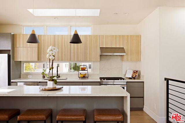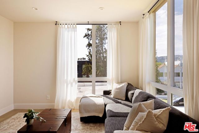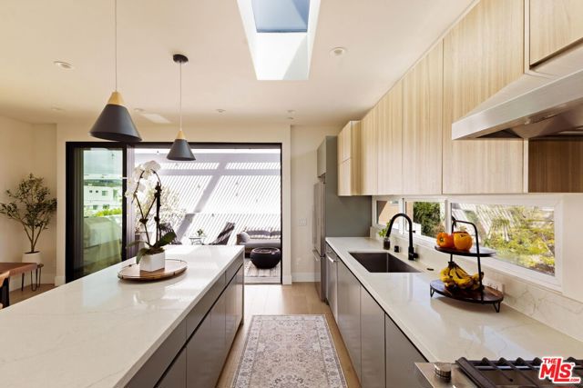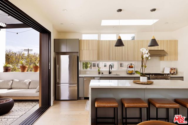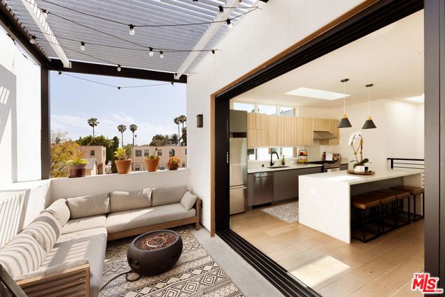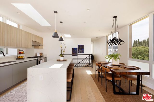 Stunning architectural home just north of Hancock Park, moments from the highly sought-after Hollywood Media District. Newly built in 2021, 836 1/2 McCadden Place is a gated 3-bedroom, 3.5-bath residence offering nearly 2,000 square feet of thoughtfully designed living space.The open-concept layout is finished with high-end designer details throughout, including French oak hardwood floors, Italian porcelain tile, and a chef's kitchen featuring custom cabinetry and a spacious eat-in island. Oversized windows and skylights flood the home with natural light, creating an ideal setting for both everyday living and effortless entertaining. All three bedrooms feature en suite bathrooms, with the primary suite offering a generous walk-in closet. The first level also includes a convenient laundry room. Designed with indoor-outdoor living in mind, the kitchen opens to a private patio through accordion-style bifold glass doors, where a newly added pergola creates the perfect space for hosting and al fresco dining. An additional patio off the living room and primary suite offers picturesque city and mountain views.Additional highlights include a direct-entry two-car garage and a prime, walkable location near SiriusXM offices, Sightglass Coffee, Petit Trois, Osteria Mozza, boutique shopping along La Brea, and Heimat Gym. A seamless blend of modern design, comfort, and elevated California living.