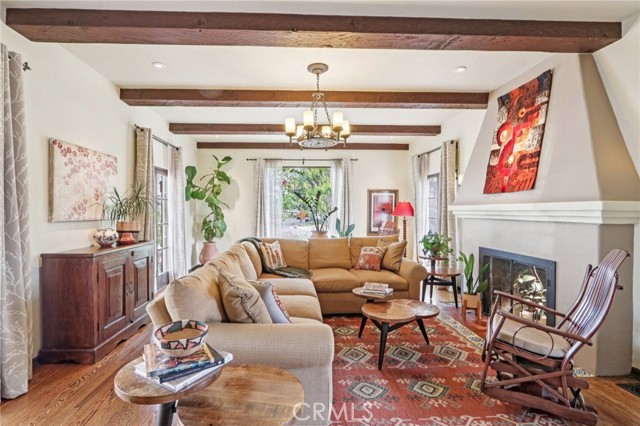 Some homes check boxes. This one grows oranges, lemons, figs, and about eighteen other reasons to cancel your weekend plans and stay home. Set in Sparr Heights and a convenient walk to all the fine dining and shopping in Montrose, this character-rich two-story blends timeless craftsmanship with thoughtful modern upgrades. Gorgeous hardwood floors run throughout, while restored original windows—complete with their classic hardware—frame views in every direction and pour sunlight into the home from all directions. The result? Rooms that feel bright, warm, and alive from morning coffee to golden-hour dinners. The living room sets the tone with beautiful beamed ceilings and a fireplace that anchors the space with undeniable charm. Just beyond, the dining room offers built-in nooks and cabinetry that feel equal parts practical and storybook—perfect for hosting lively dinners or slow Sunday brunch. The kitchen was completely reimagined with custom white cabinetry, rich soapstone counters, and an elegant Italian porcelain backsplash. High-end appliances—including a Miele Combi-Steam Oven, Miele dishwasher, and Thermador Freedom five-hob induction cooktop—make everyday cooking feel a little more like a culinary event. Upstairs, the spacious primary suite is a breezy retreat with generous windows, a large closet, and an ensuite bath featuring a rainfall shower, bidet, and heated tile floors. A sunroom adds flexible bonus space—ideal for an art studio, office, reading nook, or yoga sanctuary. Downstairs, two additional bedrooms share a well-appointed bath with a jacuzzi tub, dual vanities, and abundant storage. And then there’s the showstopping backyard. Part garden, part private orchard, part outdoor entertaining dream. Twenty-one fruit trees mean something delicious is always in season, while irrigated vegetable beds, flowers, and drip irrigation make it easy to cultivate your green thumb. Gather under the UV-protected patio roof, fire up the built-in BBQ, and let the evening stretch a little longer than planned. Modern upgrades include owned solar installed in 2024, upgraded 220v electrical with EV charger, a tankless water heater with recirculating pump, permeable paver driveway, SimpliSafe security system, and more—thoughtful improvements that make everyday living easier. A home with character, sunshine, and a backyard that might just turn you into a gardener. Don’t be surprised if guests suddenly start visiting during fruit season.