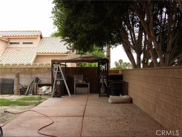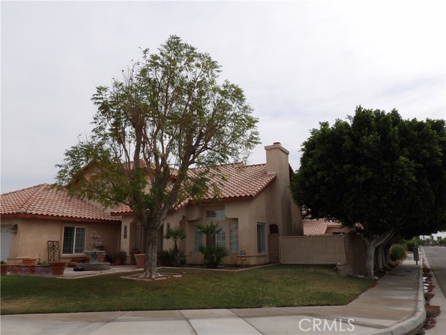 Welcome to Bella Vista in North La Quinta! Near 2 major valley thoroughfares, Schools, Shopping, Dining, Places of worship as well as the IW Tennis Gardens, yet the home is tucked away in a quiet Cul-de-sac street. The home features a large corner lot with enough rear space for a pool and the side space with the gate and concrete pad large enough for your RV and or misc. toys is already in place, not to mention the mature trees providing the much needed shade over the entire concrete area. The home is spacious and although not updated to the recent trends, It is ready for you to bring your own ideas and make it all you! A huge primary bedroom downstairs with a double sided fireplace, the jetted tub, a separate shower, walk in closet and a dual vanity. The second downstairs bedroom could also be an office. A second bathroom downstairs, Then off we go into the family room, make our way into the kitchen area and around to the living/dining combination area with another fireplace to enjoy. Upstairs we have 2 bedrooms, that connect each other and share the third bathroom. Last but not least, the spacious garage.. There are currently 2 open spaces, the third was converted into a small bedroom years ago. It could either remain a bedroom or it could be an office, work out room, it can be whatever you want it to be. Additional notes: IID electric for greater energy savings, Shutters throughout, RV space approx. 11'w x 56'L.