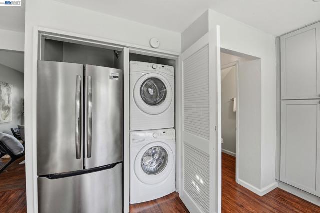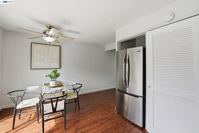 Welcome to this beautifully refreshed northwest-facing 2-bedroom, 1.5-bath townhome that blends style, comfort, and everyday practicality in a desirable Hayward location. Offering 988 sq. ft. of thoughtfully designed living space, this home features an upgraded kitchen with newer cabinetry, expanded functionality, and lightly used appliances approximately 2–3 years old. Fresh interior paint, recessed lighting, and laminate flooring enhance the home’s bright and inviting atmosphere. Additional highlights include in-unit stackable laundry, separately metered gas and water, and a newer water heater for added convenience. The private backyard features recently installed concrete for low-maintenance outdoor living, with a dedicated area ideal for gardening or adding personal touches, along with a charming lemon tree that adds character. Two covered parking spaces add everyday ease. Set within a quiet, beautifully landscaped, well-maintained community with low HOA dues, this townhome is ideally located near Costco, Interstate 880, and the San Mateo Bridge, perfect for commuters and close to everyday essentials.