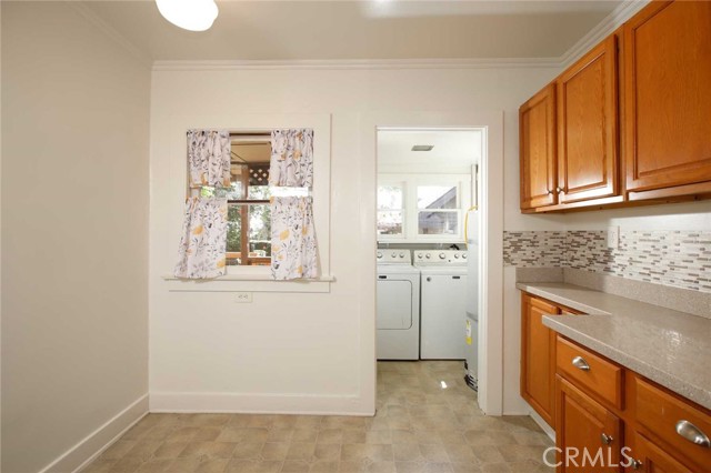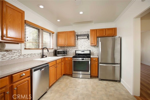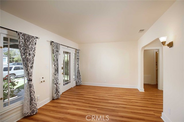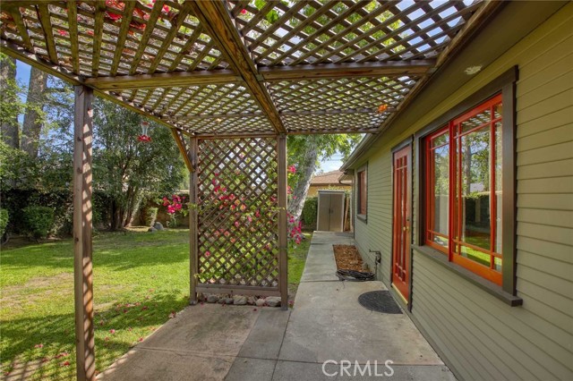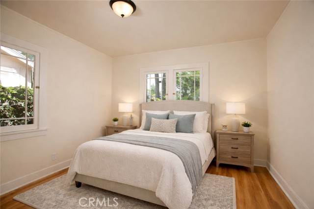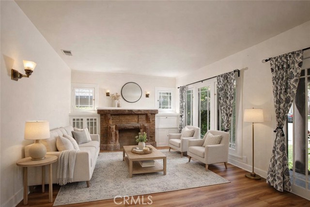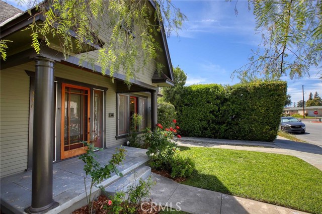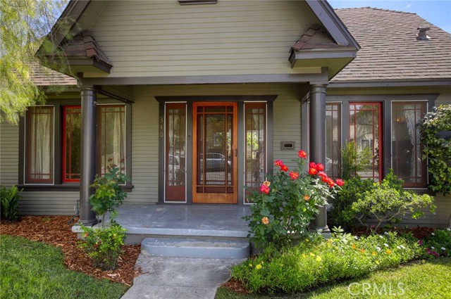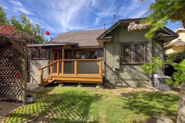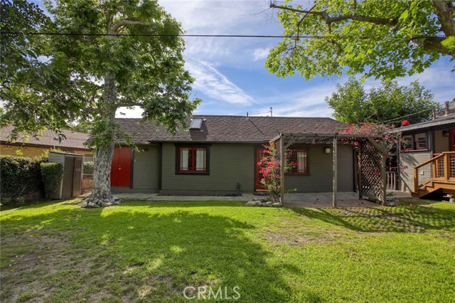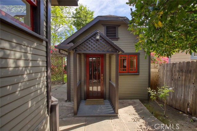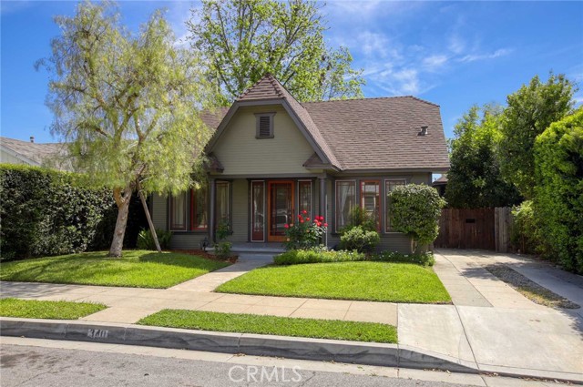 Charming 1925 Craftsman inspired design with exceptional curb appeal, ideally located just moments from vibrant downtown Monrovia. Step into a welcoming living room featuring a decorative fireplace and an arched doorway that leads to a formal dining room complete with classic built-in cabinetry. The updated kitchen includes an eat-in area and blends modern convenience with timeless style. Two bedrooms and a full updated bathroom are located off the hallway. Additional features include window casings, central air and heat, luxury vinyl flooring, a dedicated laundry room, and abundant natural light throughout. Custom deck overlooks the lush backyard filled with mature trees, offering a private and serene outdoor retreat. The craftsman inspired design extends into the guest unit as well. The guest unit offers one bedroom with vaulted ceilings, ceiling fan, a full bath, a kitchenette, providing flexible living options. A storage room is conveniently located at the rear of the property and is connected to the guest unit. A unique opportunity to own a character-rich home with added space and versatility in a prime Monrovia location.