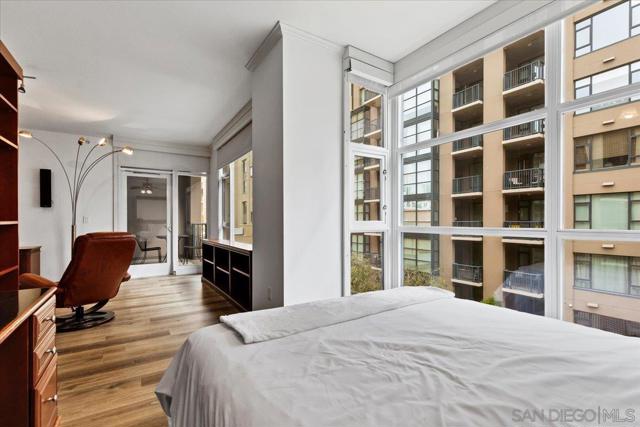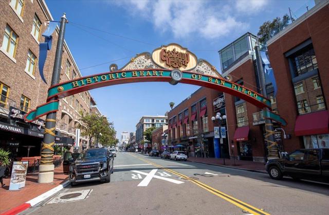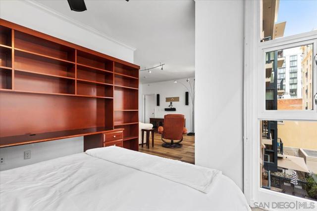 Nestled in the heart of the vibrant Gaslamp Quarter, this sophisticated 1-bedroom, 1-bath plus extra bonus area within the sought after Trellis building, offers an exceptional blend of style and convenience. The expansive kitchen boasts sleek granite countertops, stainless steel appliances, ample cabinetry and a generous walk-in pantry with built-in shelving—perfect for culinary enthusiasts. Flowing seamlessly into the sunlit living room, oversized windows bathe the space in natural light, while a charming balcony invites you to unwind and soak in the dynamic cityscape. The versatile bonus area offers endless possibilities, whether as a home office, yoga retreat or guest nook. The spacious bedroom, overlooking the private balcony, features custom-built closet organization and blackout blinds for ultimate tranquility. A stackable in-unit washer and dryer and a dedicated underground parking space complete the home’s practical luxuries. Trellis elevates urban living with an array of premium amenities, including secured access to the building and elevators, a serene open-air atrium with a cascading fountain, a refined lobby with a mailbox area and 24-hour parcel lockers, a state-of-the-art fitness center, and a second-floor courtyard with gas grills—ideal for entertaining. With on-site security ensuring peace of mind, this sought-after community is mere steps from iconic landmark dining destinations, Petco Park, premier shopping, the convention center, and effortless trolley and freeway access. VA and FHA approved building!