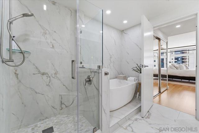 Experience elevated urban luxury in the heart of Downtown San Diego’s prestigious Marina District at the highly sought-after Renaissance – South Tower. This impeccably remodeled 12th-floor residence offers a rare 3-bedroom, 3-bath floor plan with water views and expansive floor-to-ceiling windows. The completely reimagined chef’s kitchen is a true showpiece, featuring rare natural granite countertops, a paneled Bosch dishwasher, paneled Sub-Zero refrigerator, and a professional-grade Hestan range. Entertain effortlessly with a custom bar area complete with Perlick double-drawer refrigerator and wine fridge. Refined upgrades continue throughout with rich maple hardwood flooring, a Samsung Frame TV paired with surround sound. Balcony perfect for indoor-outdoor living. The luxurious primary suite offers a spa-inspired retreat with a freestanding soaking tub, expanded walk-in shower, custom cabinetry, and designer fixtures. The junior suite and third bathroom have been thoughtfully remodeled with custom walk-in showers, modern vanities, premium finishes, and striking 24x48 porcelain slab tile. Additional highlights include two premium parking spaces (one extra-wide and one wide with easy access) and an oversized private storage locker with bonus space—among the largest available in the building. This is a rare opportunity to own a fully upgraded residence in one of Downtown San Diego’s most desirable luxury high-rises, just moments from the waterfront A Statement of Luxury in the Marina District. Perched high on the 12th floor of Renaissance’s coveted South Tower, this rare 3-bedroom, 3-bath masterpiece sets a new standard for downtown living. Walls of glass frame sweeping water views, flooding the home with natural light and blurring the line between cosmopolitan energy and private retreat. Completely reimagined kitchen with expanded counters draped in rare natural granite, a Bosch paneled dishwasher, Sub-Zero paneled refrigerator, and a Hestan professional power range. A custom bar with Perlick double-drawer fridge and wine fridge elevates every gathering. Maple hardwood floors lead you through spacious living areas designed for both entertaining and everyday elegance, enhanced by a Samsung Frame TV with surround sound and an exterior deck finished in maple LVP flooring. The Primary Suite is a spa-like sanctuary, boasting a freestanding soaking tub, expanded shower, custom cabinetry, and designer fixtures. The Junior Suite and third bath echo the same level of sophistication with sleek custom showers, new vanities, premium fixtures, and dramatic 24x48 porcelain slab tile. Every detail speaks of convenience and exclusivity: two prime parking spaces (one extra-wide, one wide—both with easy access) and a massive storage locker with bonus space, unmatched in the building. This is more than a home, it’s a statement!