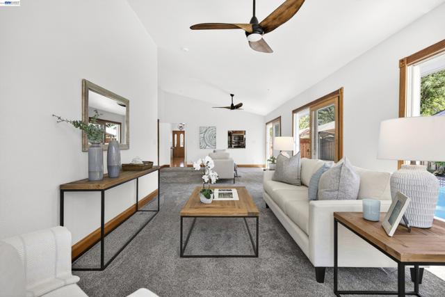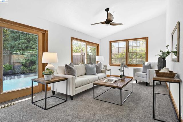 Tucked away on a quiet court, 349 Ann Ct in Livermore offers the perfect blend of comfort, functionality, and outdoor enjoyment. This spacious 3-bedroom, 3-bath home sits on a level 7,000 sq ft lot and features a private backyard retreat complete with a pool and shaded patio—ideal for relaxing or entertaining. Inside, vaulted ceilings and a cozy fireplace enhance the living room, while the well-appointed kitchen boasts stainless steel appliances, granite countertops, a large gas range, and an island with a sink. Thoughtful upgrades include a built-in wine rack, ceiling fans, air conditioning, and a fire sprinkler system. The versatile laundry room doubles as an office, complete with built-in cabinets and a beverage fridge. Additional highlights include side yard access, extra off-street parking, and a layout designed for both everyday living and hosting.