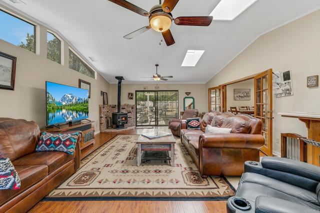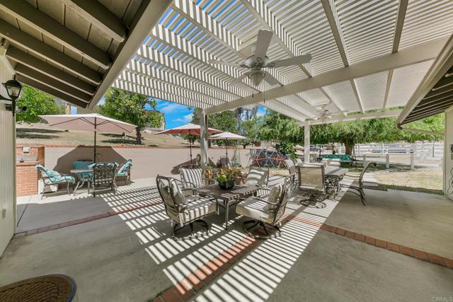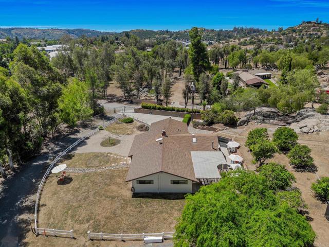 Set beneath a canopy of mature trees, this beautifully maintained and fully gated ranch property offers the perfect blend of comfort, functionality, and premier horse facilities. This is a place your horses would love to call home! The single-story home features approximately 2,005 sq ft with 3 bedrooms and 2 bathrooms, showcasing travertine, wood, and carpet flooring throughout. The thoughtfully designed kitchen includes Kitchen Aid appliances, a large 7-foot island, abundant cabinetry, and a spacious pantry. Multiple living spaces offer warmth and charm with a wood-burning brick fireplace, cozy wood stove, skylights, and French oak doors that open to the spacious family room. Step outside to a covered Aluma wood patio complete with ceiling fans, mounted TV, and built-in BBQ ideal for entertaining. Equestrian facilities are truly exceptional. The 5-stall show barn includes: (4) 12x16 stalls and (1) 12x24 foaling stall, stall mats, corner feeders, lighting, tack room, feed room with epoxy flooring, refrigerator, wash bay with hot water, and satellite/XM radio with exterior speakers. The property also features: 100x125-ft riding arena with sand footing and 3-rail vinyl fencing, 50-ft round pen with lights and automatic sprinklers, two turnout paddocks (60x60 & 60x90) with shelters, misters, and auto water, vinyl fencing and fully fenced 6-ft perimeter with electric gate entry, and two additional storage sheds. Additional highlights include a permitted 2,000 sq ft detached garage (currently used as an art/sewing studio with bedroom and bath), 22 fully paid solar panels, updated HVAC and water heater, and beautifully landscaped grounds with fruit trees and natural rock formations. This move-in-ready, well-organized facility is ideal for training, breeding, or simply enjoying the ultimate equestrian lifestyle.
