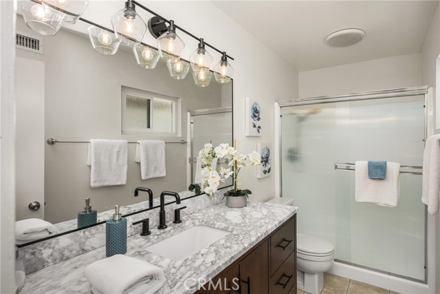 Welcome to 17522 Pine Circle in Yorba Linda. This one is truly something special. Situated on the end of a small cul-de-sac street sits this beautiful single story home. Enter into this open floor plan with oversized family room with accented stone fireplace, perfect for everyday living. The kitchen saw a complete remodel with all new cabinetry, granite counters, stainless appliances, and picturesque windows showcasing the incredible grounds. Dining room is light and bright and adjacent to the kitchen featuring a wall of custom cabinetry and ceiling fan. An oversized sliding glass door to the patio makes this the perfect entertainers home. Primary bedroom offers a stunning remodeled bath with walk-in shower, newer cabinetry, quartz countertops and new hardware. Three additional bedrooms are well appointed with recessed lighting, fans, mirrored doors and all freshly painted. The grounds are exceptional! Covered patio is an ideal extension of the home offering added space to host parties and relax. You will LOVE the additional garage/workshop. Make this space yours as a home office, gym, home school or anything you can imagine. The garage currently has a lift, office and workshop. Plenty of room for RV, boat, toy trailer, play ground and a garden. Slab driveway on right side of home is perfect place for additional parking for all the toys. Two car attached garage offers laundry and additional storage. Home has been recently painted making this a move in ready home. Bonus there is solar system to keep electric low with 21 panels and low lease payments. This neighborhood is centrally located to everything Yorba Linda offers with excellent schools, local shopping, easy freeway access, low tax rate and all in one of the best cities to live.