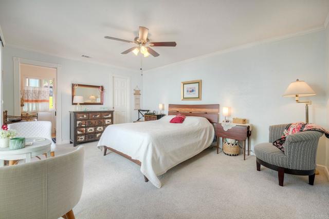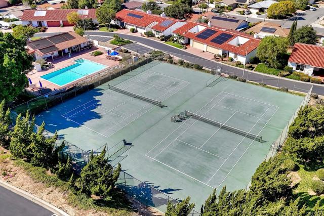 Welcome to this wonderful duet single-family home in Escondido, where flexible living meets timeless charm. Enter through a private atrium to a sun-drenched retreat for year-round enjoyment. This thoughtfully designed reverse two-story plan places the bedrooms on the lower level and the Primary suite on the main level, offering a unique and functional layout. The main living area impresses with a soaring ceiling and a seamless flow to a private deck overlooking a lush canopy of trees and hillside views. The beautifully appointed kitchen showcases a statement copper sink, a waterfall quartz countertop, and abundant storage. A dining room bar counter seats three comfortably, perfect for casual meals or entertaining. The main level is home to the Primary suite, a second bathroom, and a flexible den. The lower level offers a family room, an ensuite bedroom, and a third bedroom ideal for a home office. The family room gives access to a private patio. A two-car garage rounds out this home with generous storage space. Whether you prefer single-level or two-story living, this home effortlessly adapts to your lifestyle. The community features a pool, spa, and two tennis courts.