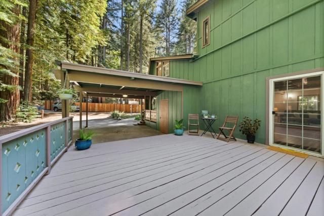 Tucked at the end of a quiet cul-de-sac in the Santa Cruz Mountains, this Felton home offers the kind of space, privacy & lifestyle that is getting harder to find at this price point. With approximately 1,875 sq ft of living space, this 4-bedroom, 2.5-bath home includes a bonus office space, extra storage & a flexible layout offering more room to live, work, host & unwind. Inside, natural light pours in through skylights & large windows framing peaceful forest views. Open beam ceilings, vaulted accents, laminate flooring, double pane windows & a cozy pellet stove create a warm, inviting feel. The recently remodeled kitchen features electric appliances, while the ground-floor bedroom & full bath add convenience for guests. Step outside to relax on the deck, fire up the BBQ, & enjoy your own redwood fairy circle with space for hammocks, picnic table & space for kids & pets to play. You may even hear the soothing sounds of nearby Gold Gulch Creek. With ample parking, including room for oversized vehicles & just minutes to downtown Felton, Santa Cruz & beaches, hiking & biking trails, Wild Roots Market, Humble Sea, Roaring Camp & Felton Music Hall, this is a special chance to enjoy cozy mountain living with extra bedroom count & square footage at an attractive value. You'll love it!