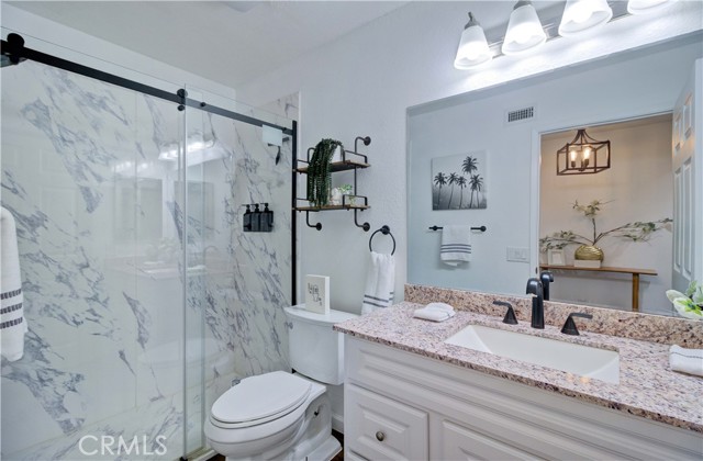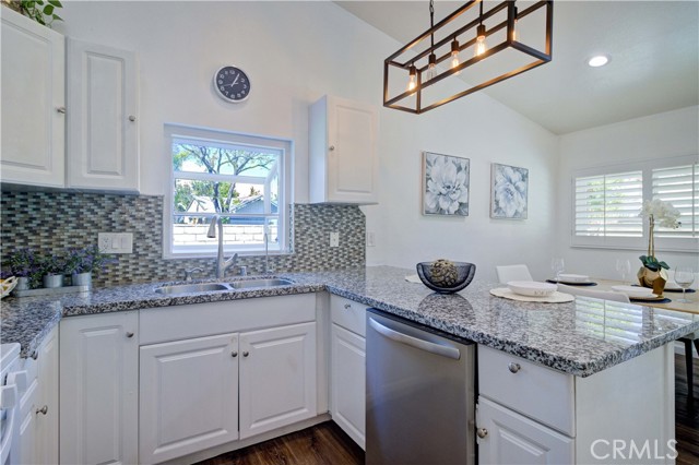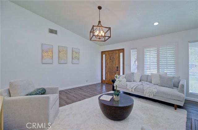 Welcome to this beautifully upgraded single-story 4-bedroom, 2-bath home located in the highly sought-after Anaheim Hills community. From the moment you step inside, you’ll be greeted by an abundance of natural light and a thoughtfully refreshed interior featuring modern finishes throughout. The spacious living room boasts vaulted ceilings and a cozy fireplace, creating a warm and inviting atmosphere. It seamlessly connects to the upgraded kitchen, which showcases white cabinetry, granite countertops, a stainless-steel sink, and newer appliances. The open flow continues into a versatile dining area or family room—perfect for everyday living and entertaining. The primary suite offers a private retreat with its own en-suite bathroom, complete with a shower, vanity, and generous closet space. Three additional bedrooms and a fully remodel hallway bathroom provide flexibility for family, guests, or a home office. This home is loaded with upgrades, including fresh interior paint, stylish laminate wood-style flooring, newer appliances, updated HVAC (A/C and heating), recessed lighting, dual-pane windows, sliding doors, and beautiful wood shutters. Hallway bathroom have been tastefully remodeled with modern finishes. Additional features include a 2-car attached garage with laundry hookups and direct access to the home for added convenience. Step outside to a private, low-maintenance backyard—ideal for relaxing or entertaining guests. Located near award-winning schools, shopping, dining, and more—with NO HOA—this is an exceptional opportunity you don’t want to miss.