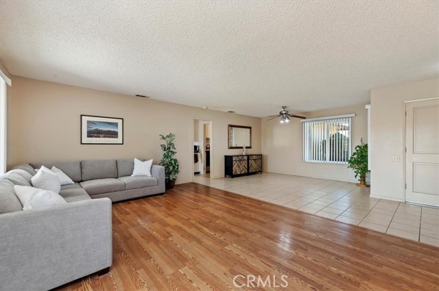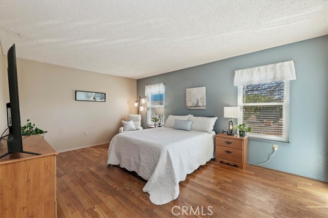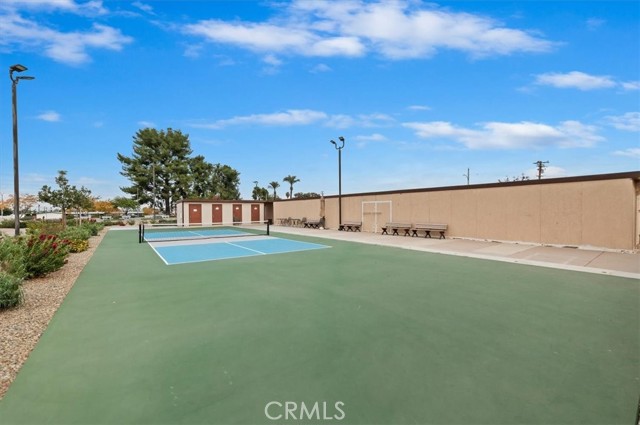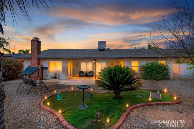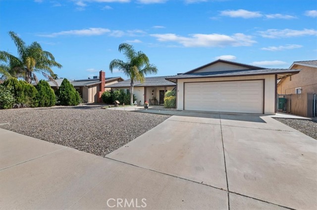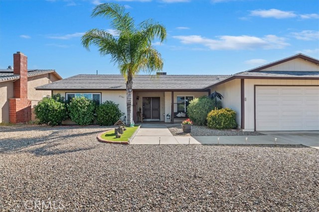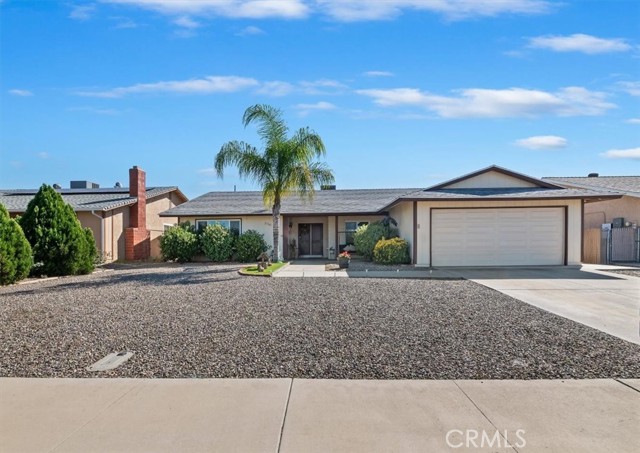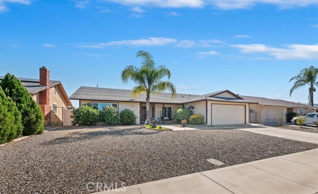 Welcome to resort-style living in the highly desirable 55+ community of Sun City Civic Center in Menifee. This beautiful single story is truly move-in ready. The double door entry takes you into the spacious open floor plan featuring attractive laminate flooring in the living room, family room, primary bedroom and dressing area. The dining room, hallway, kitchen, laundry room and bathrooms and finished with durable ceramic tile for easy maintenance. This home offers several upgrades, including newer windows, custom paint on both cabinetry and interior walls throughout. The kitchen features upgraded lighting, stove, cooktop, refrigerator and convenient breakfast bar for casual dining. The laundry room is tiled and includes a second refrigerator and the washer & dryer- all included with the property. The primary bedroom has beautiful laminate flooring, large mirrored wardrobe closets, sliding door access to the backyard and a dressing area with a vanity. The adjoining bathroom is tiled and includes a tub/shower combination. The guest bedroom has cozy carpet and offers a spacious walk-in closet and also has a connecting door into the guest bathroom. The backyard is designed for low maintenance living with desert landscaping, patio area and a fully fenced yard- perfect for entertaining. There is a 2 car garage with a work bench area and shelves for extra storage. Community amenities abound including 2 sparkling pools, spa, fitness center, shuffleboard, lawn bowling, horseshoe pits and countless clubs and activities. With low HOA. This is senior living at its finest! Do not miss the opportunity to call this lovely home your own!