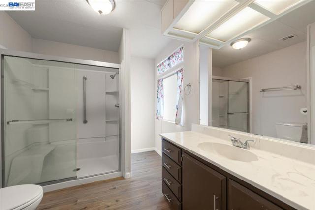 Senior Park Community with mandatory Guidelines and Park Residency Requirements. Must be 55 Plus. Must be approved by Park Manager Very Spacious Unit with 1,620 square feet of Living space! Tons of Natural Lighting Throughout Unit! Modern Laminate Flooring Throughout! Open Kitchen concept to Living Area with Outdoor views. Kitchen is complemented by Corian counters, Newer Kitchen Gas Cook Top, Double Door Refrigerator, built in Storage Pantry and opens to living space. Primary Bedroom boasts Large walk-in Closet with convenient Storage and Lighting, Primary bath, Walk-In Shower W/Seat, Glass Sliding Doors and Roomy Linen Closet. Second Bedroom offers another Walk-In Closet, right off of Bedroom W/Stall Shower & Vanity W/Mirror. Indoor laundry room W/Washer & Dryer included. Nice rear yard could be for small dog or garden area. Property has a storage unit at the end of a two car carport. This entire Unit is Bright and Welcoming of the next new Owner to make it there Own! Exterior has newer paint, just 2 years fresh! Seller has moved to another property in park! Buyers will like all the room this Unit Offers, Unit located close to Rec room, pool, paths for strolling to meet the neighbors! Welcome to Vineyard Estates! Fireplaces: NO