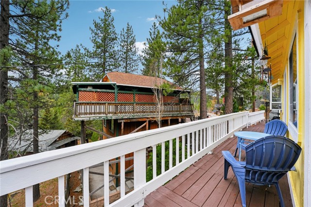Level entry, two-car parking, and a wrap-around deck set the tone for easy mountain living in this updated Arrowbear Lake cabin—where comfort, access, and location come together effortlessly. Offering 2 bedrooms, 1.5 baths, and approximately 986 sq ft on a 4,400 sq ft lot, this home has been refreshed with new interior paint and flooring, new exterior paint, and updated deck surfaces, creating a clean, move-in ready feel from the moment you arrive. The main level welcomes you with a light-filled great room anchored by a fireplace and charming bay window, flowing into an open kitchen with breakfast bar, generous counter space, and abundant cabinetry—designed for both everyday living and relaxed entertaining. A convenient half bath completes this level. Downstairs, you’ll find two bedrooms, a full bath, and side-by-side laundry hookups tucked neatly into a hall nook for practical living. An unfinished build-up area adds valuable storage and opens the door to future expansion or creative use. Surrounded by treetop views, the setting offers a rare balance of privacy and accessibility—easy to find, yet quietly removed. Ideally located in the Arrowbear Lake area near year-round recreation, including Arrowbear Park (approx. 0.6 miles), Snowdrift Snow Tubing Park (approx. 3.5 miles), Snow Valley Mountain Resort (approx. 4.7 miles), Arrowbear Lake, and miles of trails within the San Bernardino National Forest, this property is well-suited as a full-time home, weekend retreat, or investment opportunity in the Southern California mountains.
