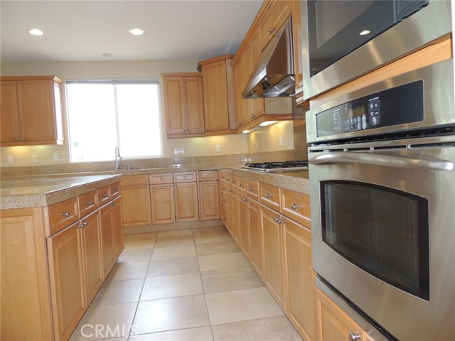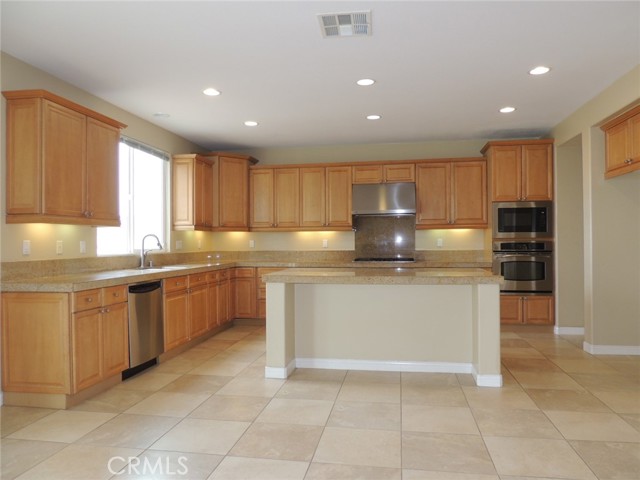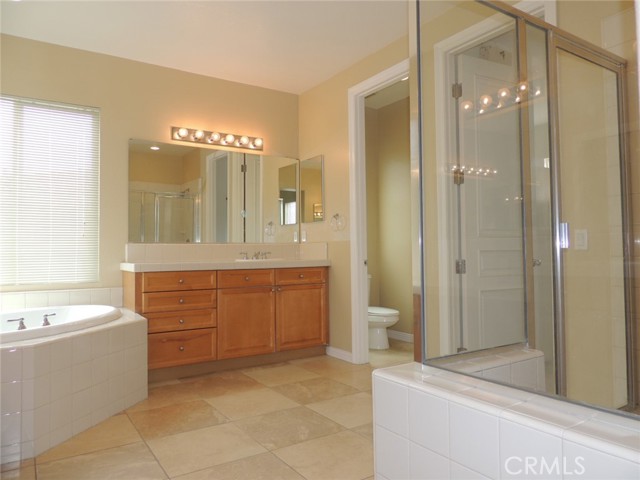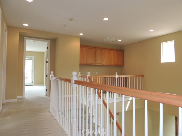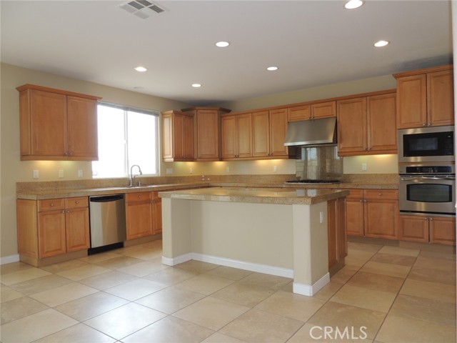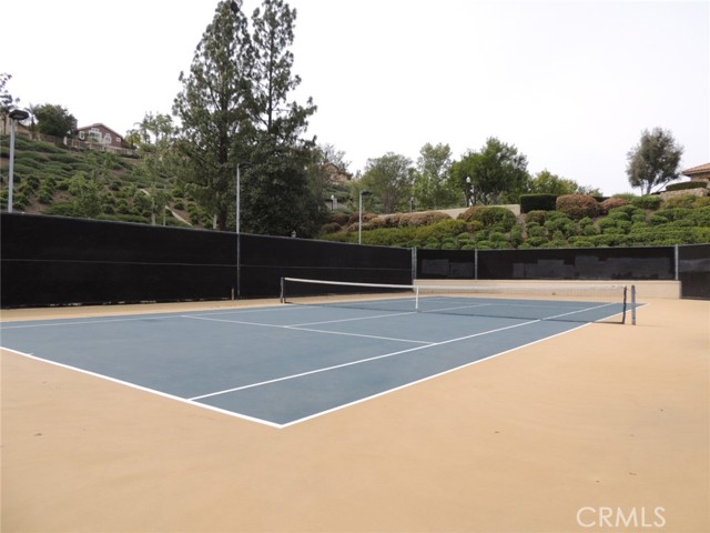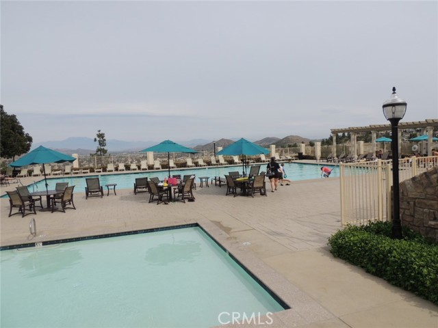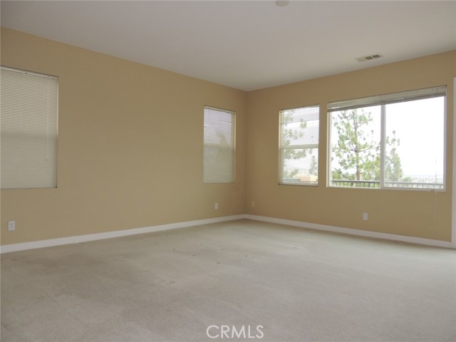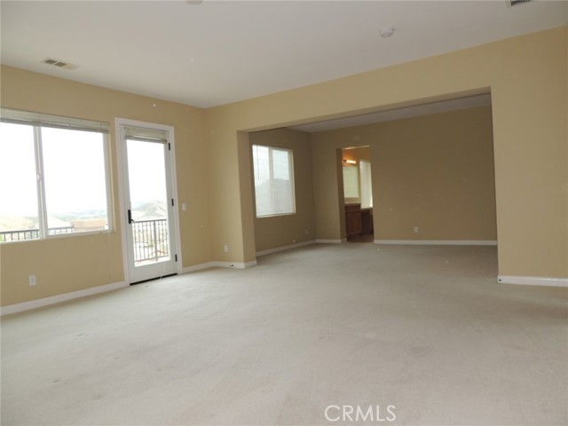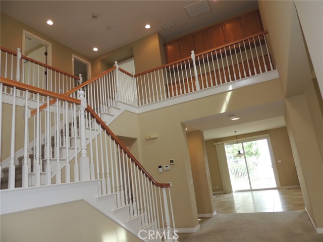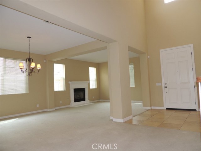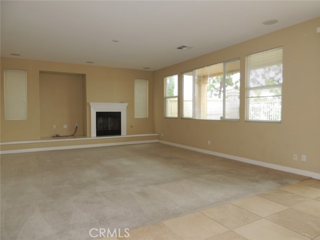 Canyon and lake view house. Entry with high ceilings. Living room with fireplace adjacent to formal dining area. Downstairs half bath with vanity sink and toilet. Large and open kitchen next to family room with built in ceiling speakers and fireplace overlooking fenced backyard. Huge kitchen with tiled counters, stainless steel hood, microwave, and oven. Kitchen island with cabinets. Kitchen cabinets with pull outs. Upstairs master bedroom with retreat opens to balcony. Master bathroom with separated shower and tub, his and her vanity sinks and walk-in closet. Jack and Jill bedrooms with shared bathroom. Carpet flooring throughout the house except kitchen, bathrooms, laundry room and kitchen. Enjoy Tuscany Hills HOA offers tennis court, volleyball court, basketball court, pools/spas, gated children playground, club house with amenities. 3 car tandem garage with direct garage access. Laundry room upstairs with sink. Dual outdoor AC condensers. Backyard covered porch area with view.