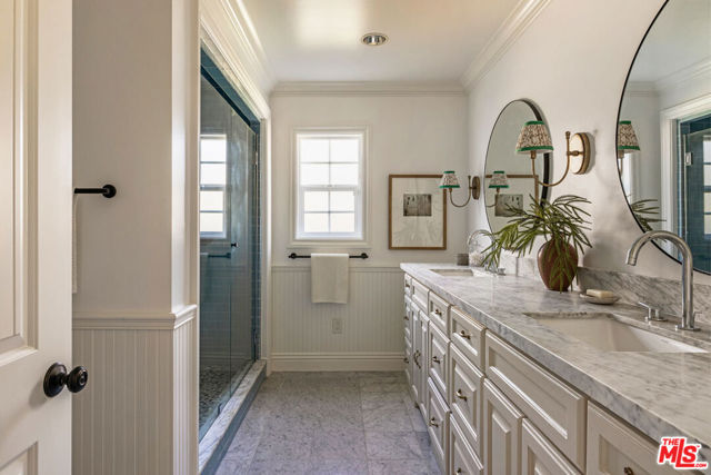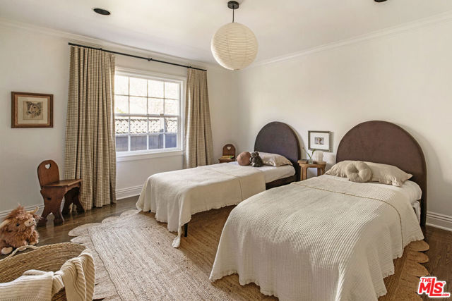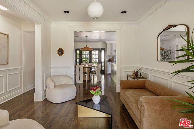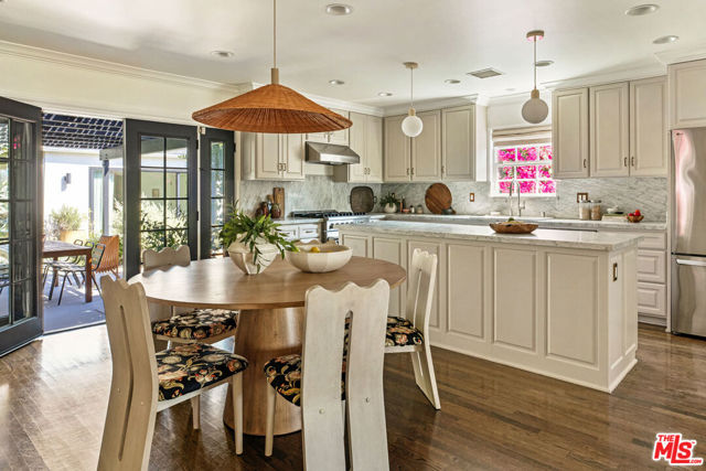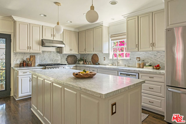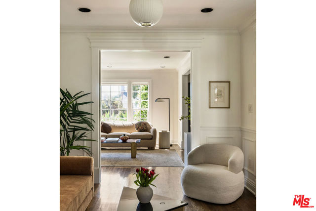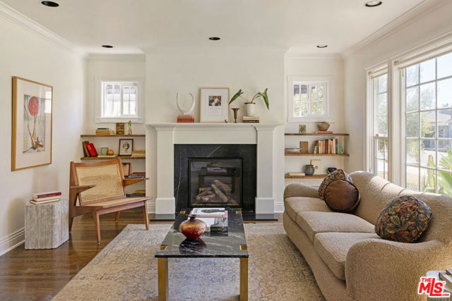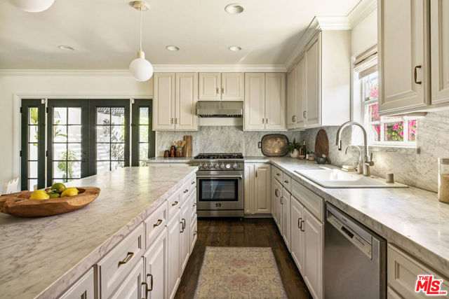 Live the LA dream with this beautifully updated Traditional featuring an ADU and grassy yard. The gracious interior is a study in old-world charm with character details throughout, including wainscoting, hardwood floors, and crown molding. The light-filled living room features a gorgeous fireplace; a sunny den connects living and spacious kitchen, finished with stainless appliances and island. French doors take you from the dining room to the backyard for seamless indoor-outdoor flow. Three bedrooms include a set-back primary with French doors, ensuite bath, and walk-in shower. The modern ADU features an oversized sliding glass wall, built-in desk, and an updated kitchen, perfect for hosting or rental income. Relax in the tranquil backyard, your private oasis with grassy play area, vibrant bougainvillea, stone lounge with fire pit, and pergola-covered patio for dining and entertaining. Amenities include central AC, laundry, and parking. You're moments from Highly Likely, Halfday Coffee, Maydan Market, and the Kenneth Hahn State Recreation Area.