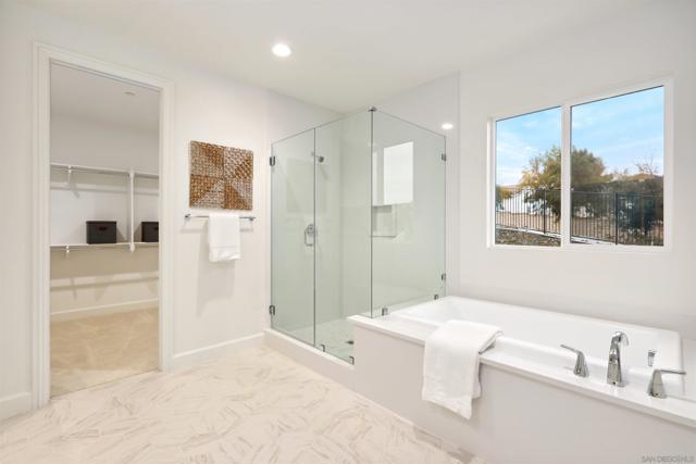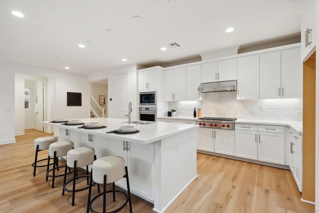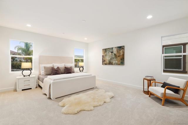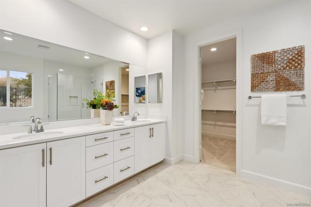 Welcome to this beautifully upgraded, move-in-ready home located in the sought-after Ridgeview community by KB Home in San Marcos. This stylish two-story residence offers 5 bedrooms, 3.5 bathrooms, and a versatile loft, all enhanced with modern design elements and integrated smart home features. Interior highlights include luxury vinyl plank flooring, plush upgraded carpeting with premium padding upstairs, recessed lighting, and flat-screen pre-wiring throughout. Designed for both everyday living and entertaining, the open-concept kitchen showcases high-end Cove and Wolf appliances, quartz countertops, a designer tile backsplash, and an expansive island that anchors the space. Additional features include 9-foot ceilings, 8-foot interior doors, and a main-level bedroom with a full bath—perfect for guests or multi-generational living. The spacious primary suite offers a large walk-in closet and a spa-like bathroom retreat. Thoughtful upgrades continue with an open stair rail system, Ecobee Smart Thermostat, video doorbell, leak detection system, hot water recirculation pump, tankless water heater, and a fully owned solar energy system. Ideally situated just minutes from Highways 78 and I-15, the home is close to major institutions such as Tri-City Medical Center, Kaiser Permanente, Palomar Medical Center Escondido, California State University San Marcos, and Palomar College. Located within the highly regarded San Marcos Unified School District and near scenic hiking and mountain biking trails, this home offers the perfect balance of comfort, convenience, and lifestyle.