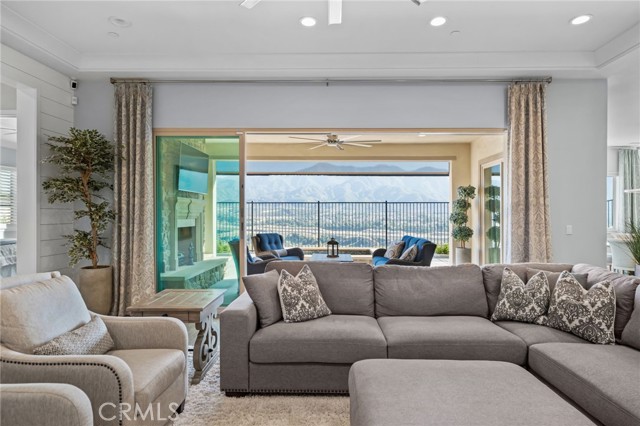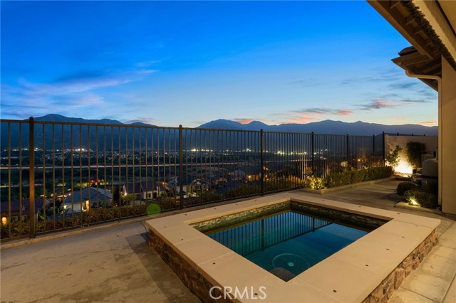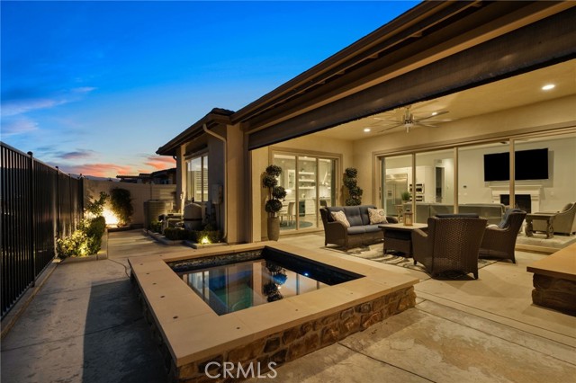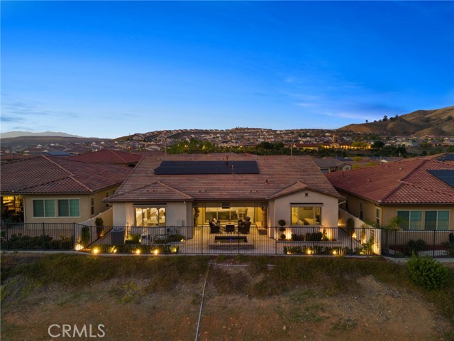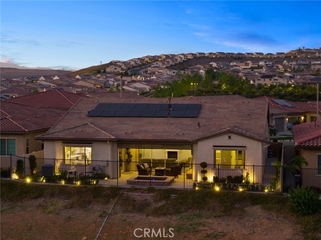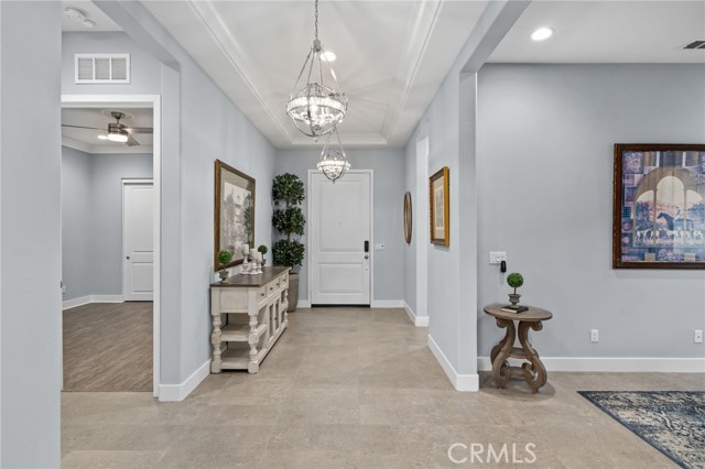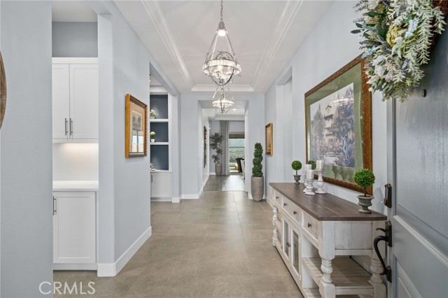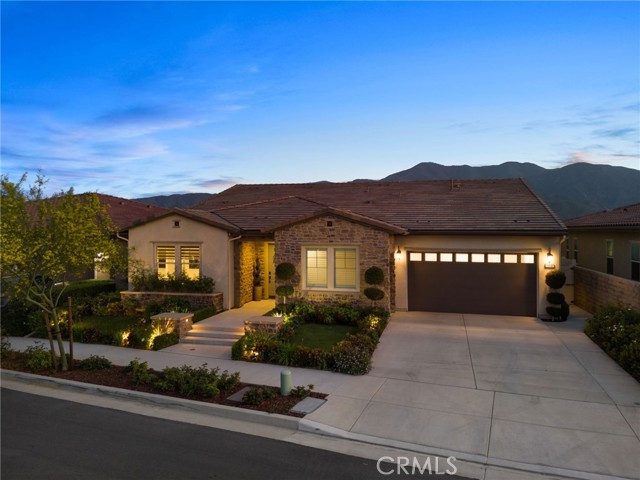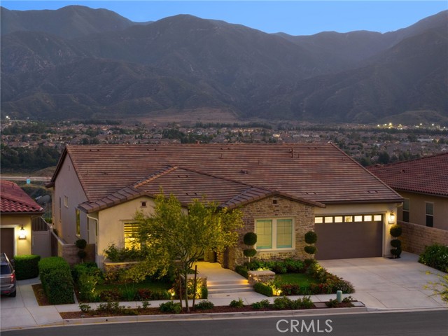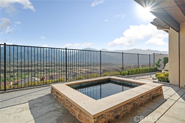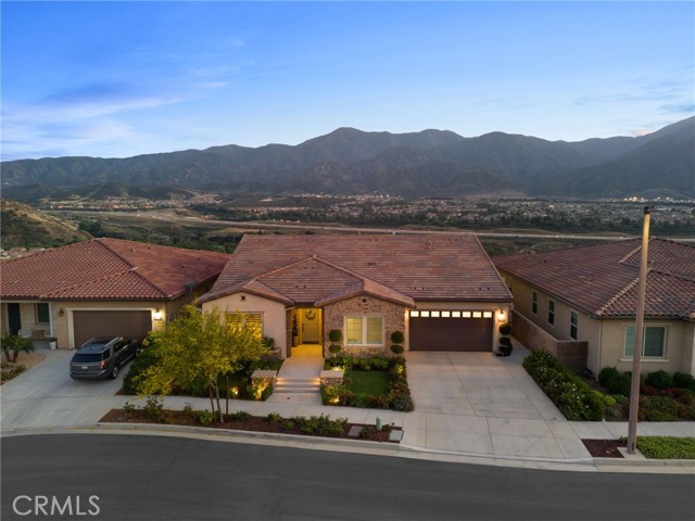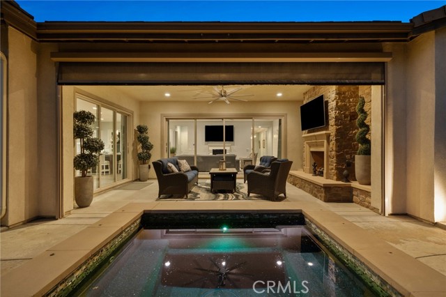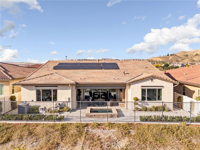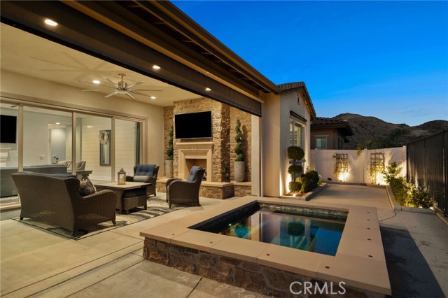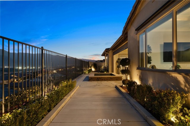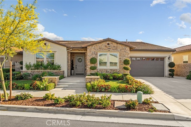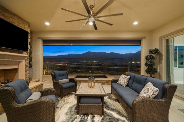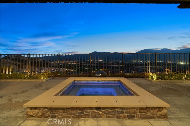Welcome to elevated luxury living in the prestigious age restricted gated community of Terramor where thoughtful design, refined finishes, and seamless indoor-outdoor living come together in one of the community’s most exceptional residences. This meticulously upgraded home features paid-off solar (16 panels), a tankless water heater, and a fully integrated smart home system with Lutron Casita switches and Ring security. The exterior is an entertainer’s dream, highlighted by a built-in gunite jacuzzi with matching stone, stamped concrete decking, custom planters, lush artificial turf, and beautifully coordinated stonework from the front elevation to the backyard. Enjoy evenings under the covered California Room, complete with a custom stone gas fireplace, large ceiling fan, and electric roll-down shade for year-round comfort. Inside, elegance meets functionality with custom paint throughout, crown molding, coffered ceilings in the entry, living room, and primary suite, and premium flooring including luxury laminate and large-format ceramic tile. The open-concept living area boasts a stunning fireplace, shiplap accent wall, and two expansive stacking sliding doors that create a seamless transition to outdoor living. The gourmet kitchen is a true showpiece, featuring extended cabinetry with a built-in workstation and china cabinet, quartz countertops, a custom-painted island with granite, and an imported Japanese ceramic tile backsplash. High-end KitchenAid appliances include a 48” 6-burner range with grill and double ovens, a third built-in oven, microwave/convection, built-in refrigerator, beverage fridge, and more perfect for both everyday living and entertaining. Retreat to the luxurious primary suite with coffered ceilings, custom carpet, and a spa-inspired bathroom showcasing a floor-to-ceiling tiled shower with frameless glass, quartz counters, and upgraded cabinetry. Additional highlights include ensuite bathrooms, solid core doors, insulated interior walls, custom window treatments, and abundant storage including a large finished attic with shelving and lighting. The garage setup is equally impressive with epoxy floors, built-in cabinets, overhead storage, enhanced LED lighting, and space for two cars plus a golf cart garage. Every detail of this home has been carefully curated to deliver comfort, efficiency, and timeless style offering an elevated lifestyle in one of the area’s most desirable communities.