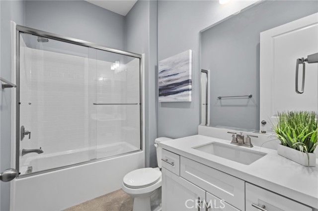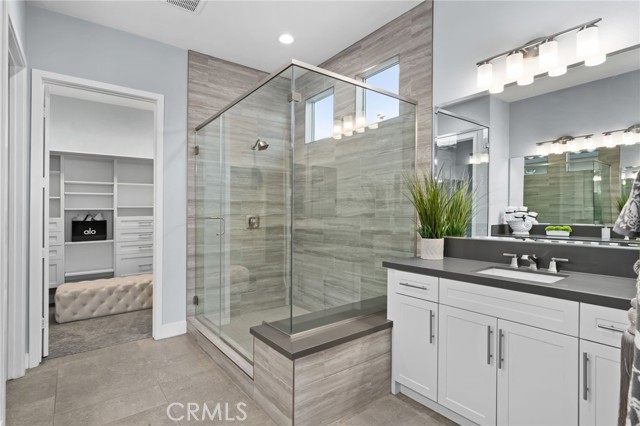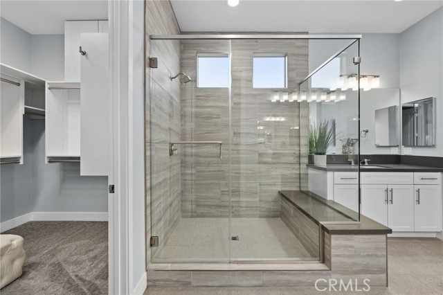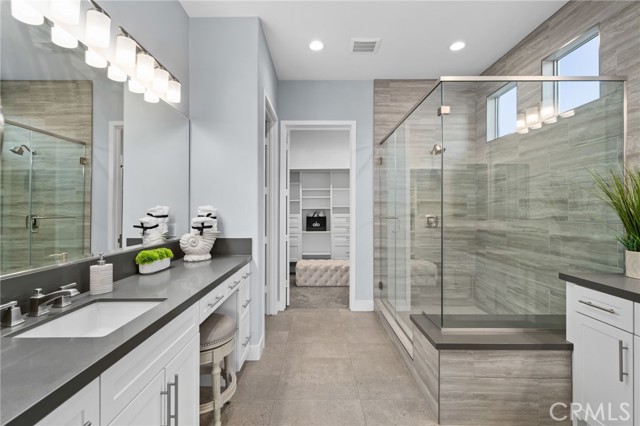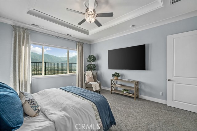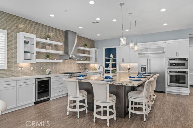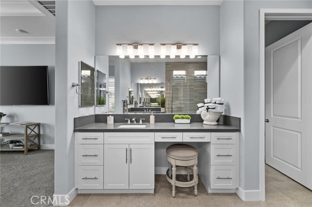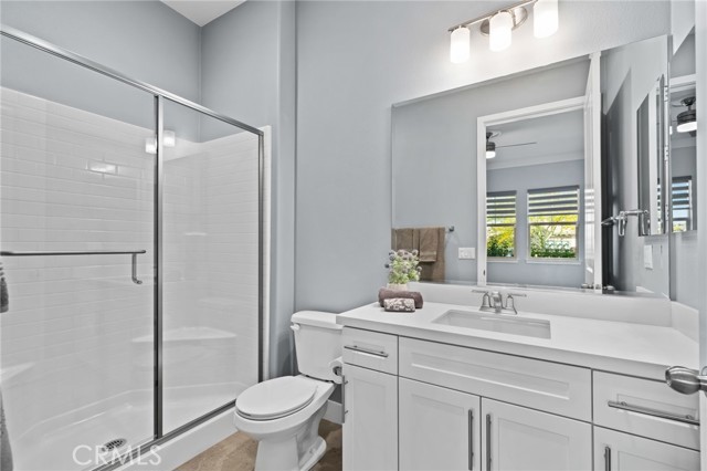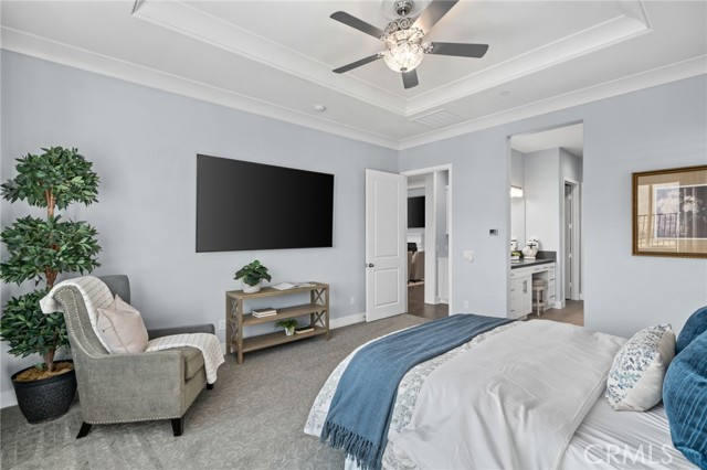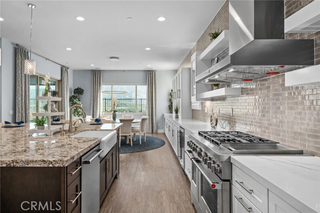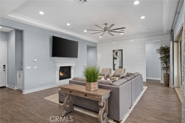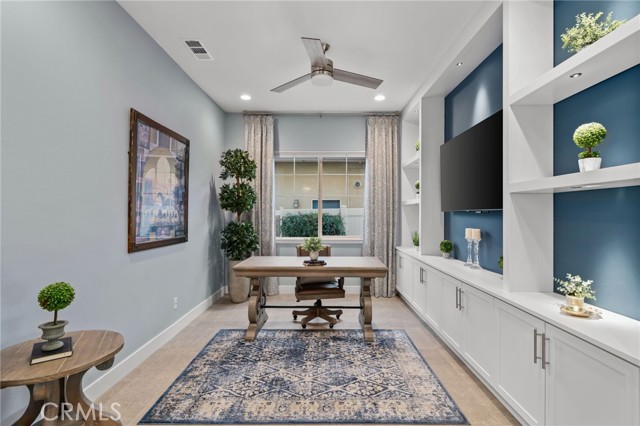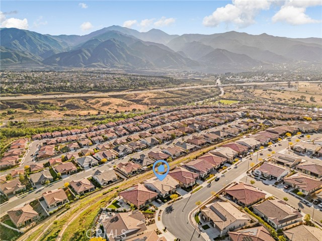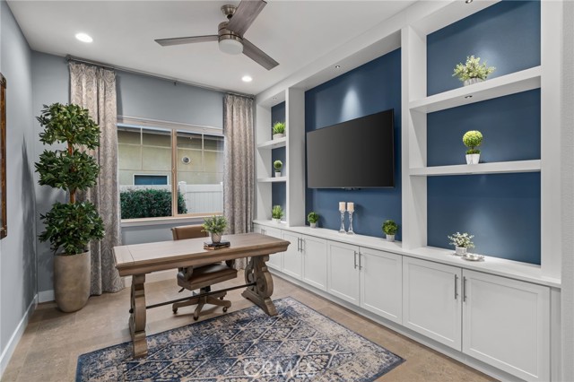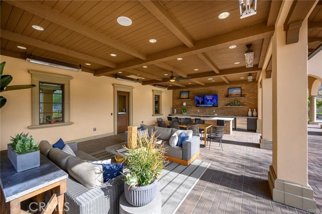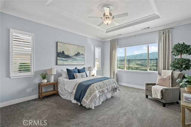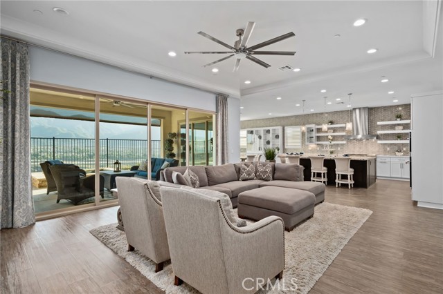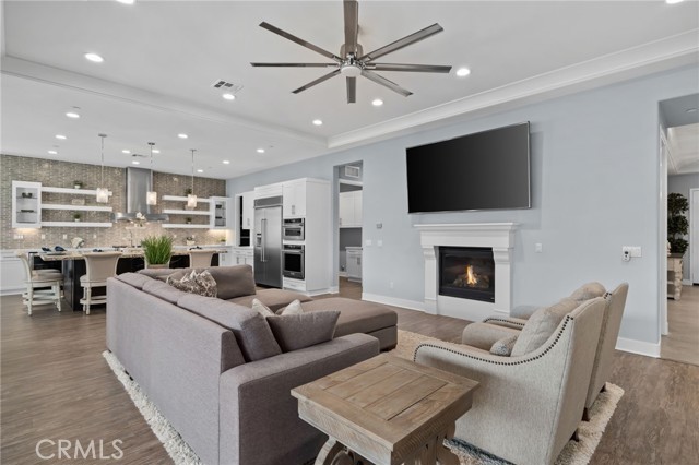 Welcome to elevated luxury living in the prestigious age restricted gated community of Terramor where thoughtful design, refined finishes, and seamless indoor-outdoor living come together in one of the community’s most exceptional residences. This meticulously upgraded home features paid-off solar (16 panels), a tankless water heater, and a fully integrated smart home system with Lutron Casita switches and Ring security. The exterior is an entertainer’s dream, highlighted by a built-in gunite jacuzzi with matching stone, stamped concrete decking, custom planters, lush artificial turf, and beautifully coordinated stonework from the front elevation to the backyard. Enjoy evenings under the covered California Room, complete with a custom stone gas fireplace, large ceiling fan, and electric roll-down shade for year-round comfort. Inside, elegance meets functionality with custom paint throughout, crown molding, coffered ceilings in the entry, living room, and primary suite, and premium flooring including luxury laminate and large-format ceramic tile. The open-concept living area boasts a stunning fireplace, shiplap accent wall, and two expansive stacking sliding doors that create a seamless transition to outdoor living. The gourmet kitchen is a true showpiece, featuring extended cabinetry with a built-in workstation and china cabinet, quartz countertops, a custom-painted island with granite, and an imported Japanese ceramic tile backsplash. High-end KitchenAid appliances include a 48” 6-burner range with grill and double ovens, a third built-in oven, microwave/convection, built-in refrigerator, beverage fridge, and more perfect for both everyday living and entertaining. Retreat to the luxurious primary suite with coffered ceilings, custom carpet, and a spa-inspired bathroom showcasing a floor-to-ceiling tiled shower with frameless glass, quartz counters, and upgraded cabinetry. Additional highlights include ensuite bathrooms, solid core doors, insulated interior walls, custom window treatments, and abundant storage including a large finished attic with shelving and lighting. The garage setup is equally impressive with epoxy floors, built-in cabinets, overhead storage, enhanced LED lighting, and space for two cars plus a golf cart garage. Every detail of this home has been carefully curated to deliver comfort, efficiency, and timeless style offering an elevated lifestyle in one of the area’s most desirable communities.
